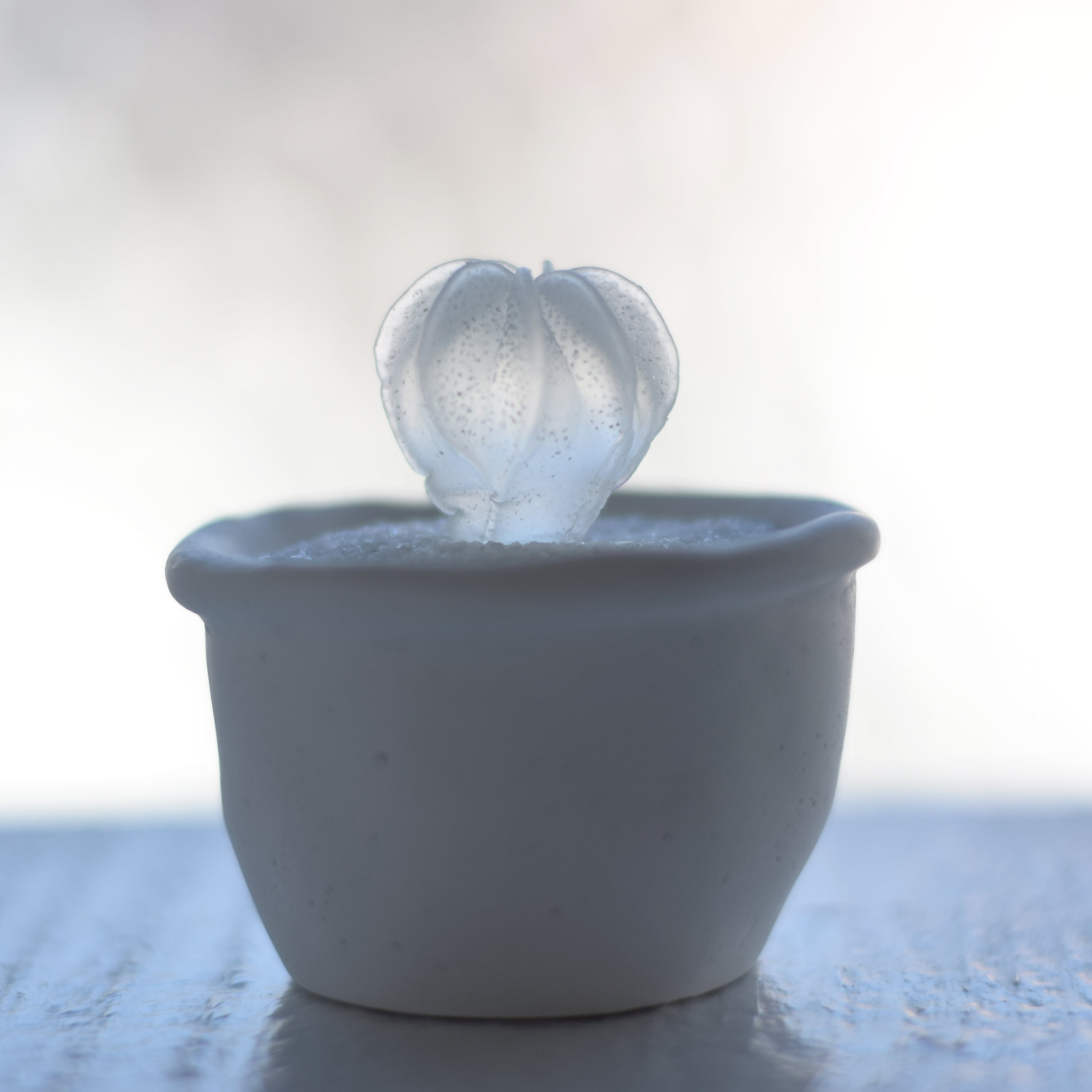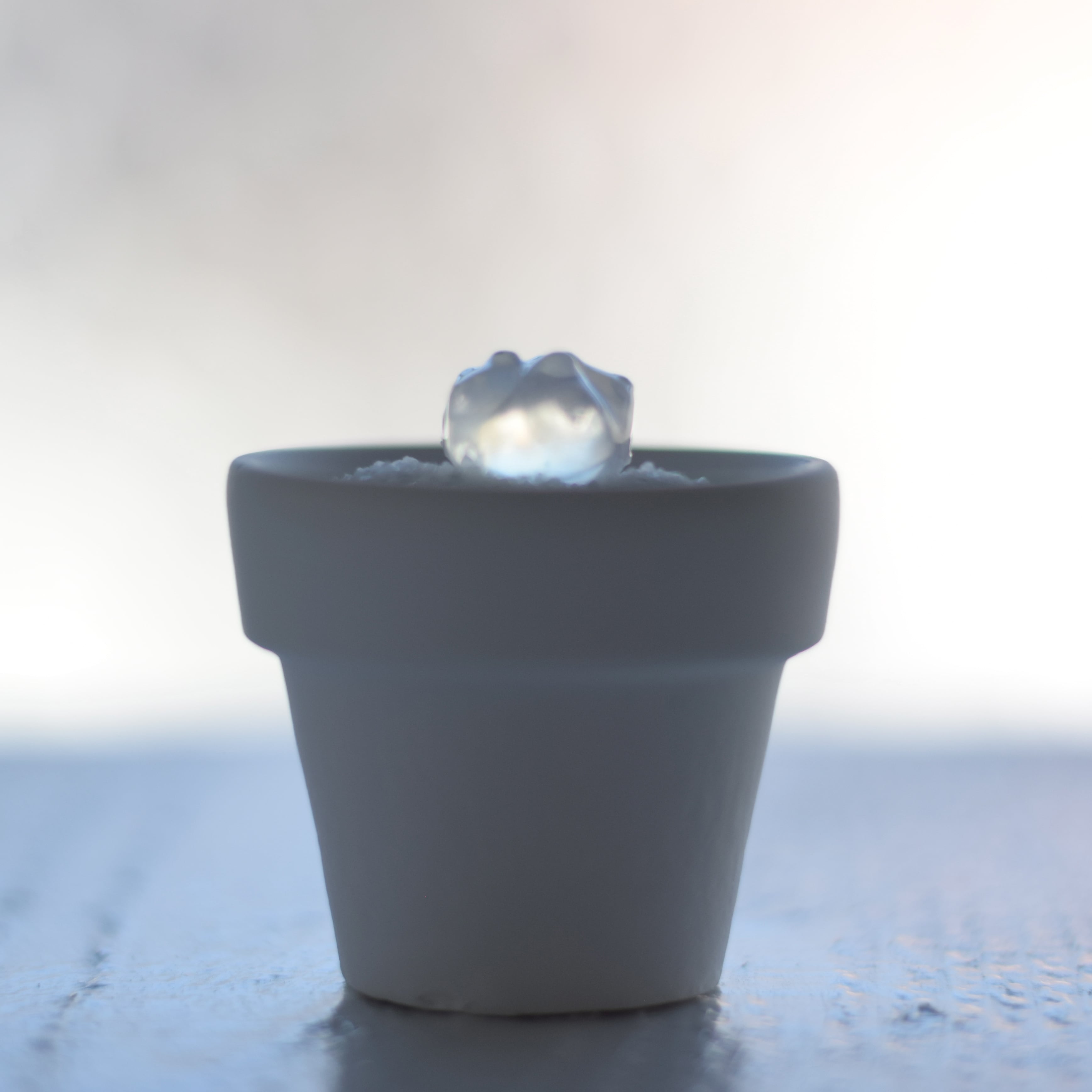 サボテンが体内にため込んでいるお水を感じる透明なサボテンです。