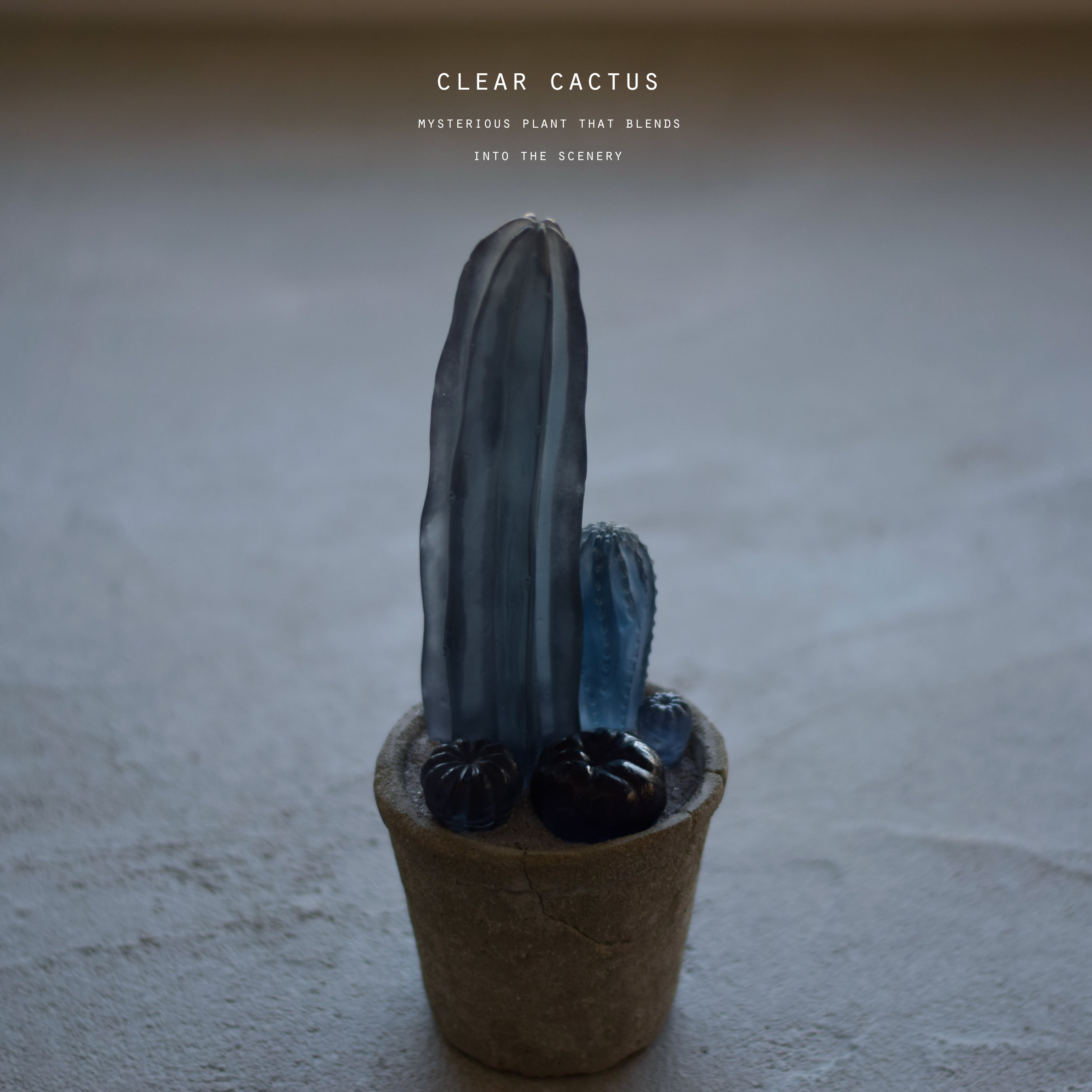 夜の透明サボテンは半透明から透明な樹脂で作られた造形作品です。