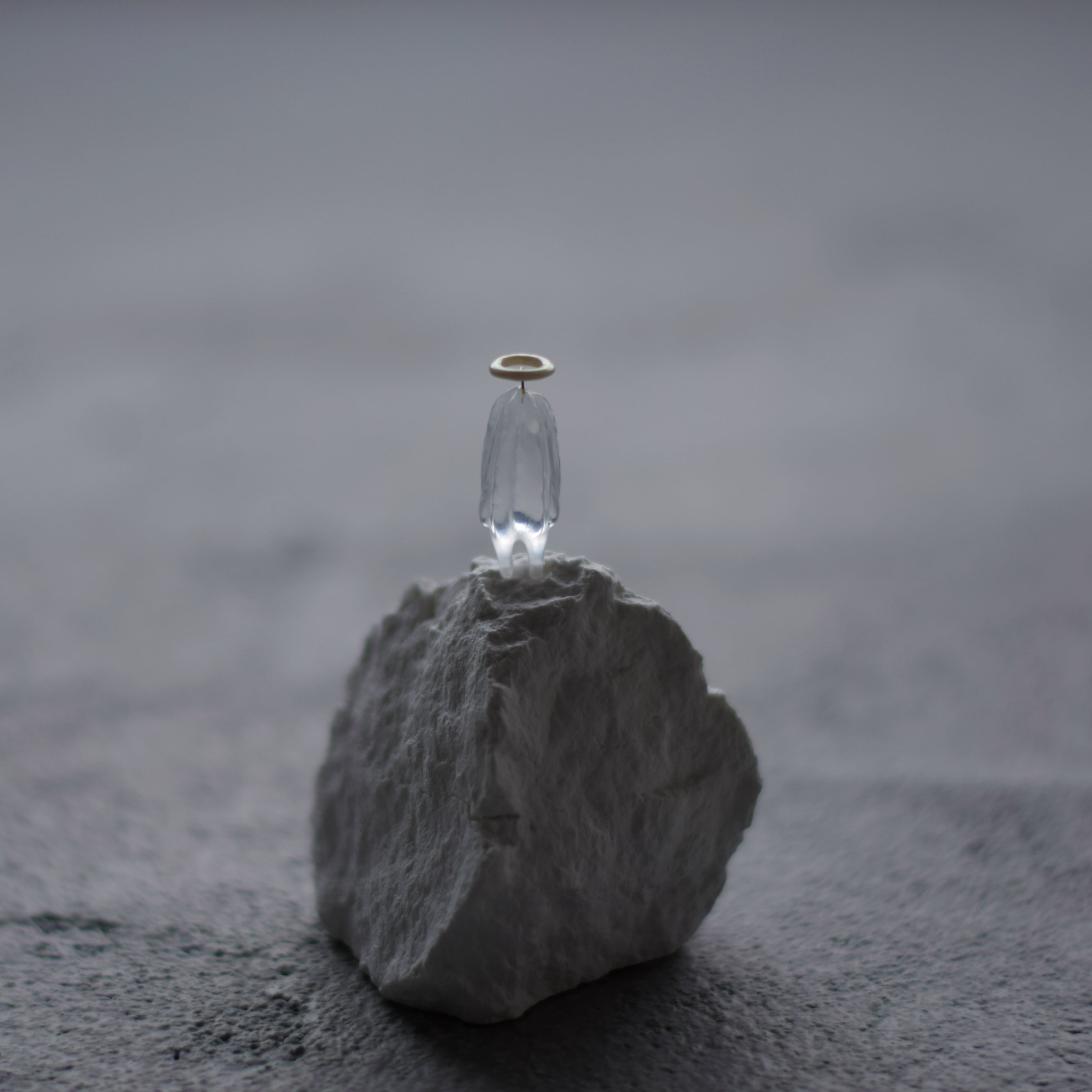 「サボ天使」は透明樹脂で作られた造形作品です。