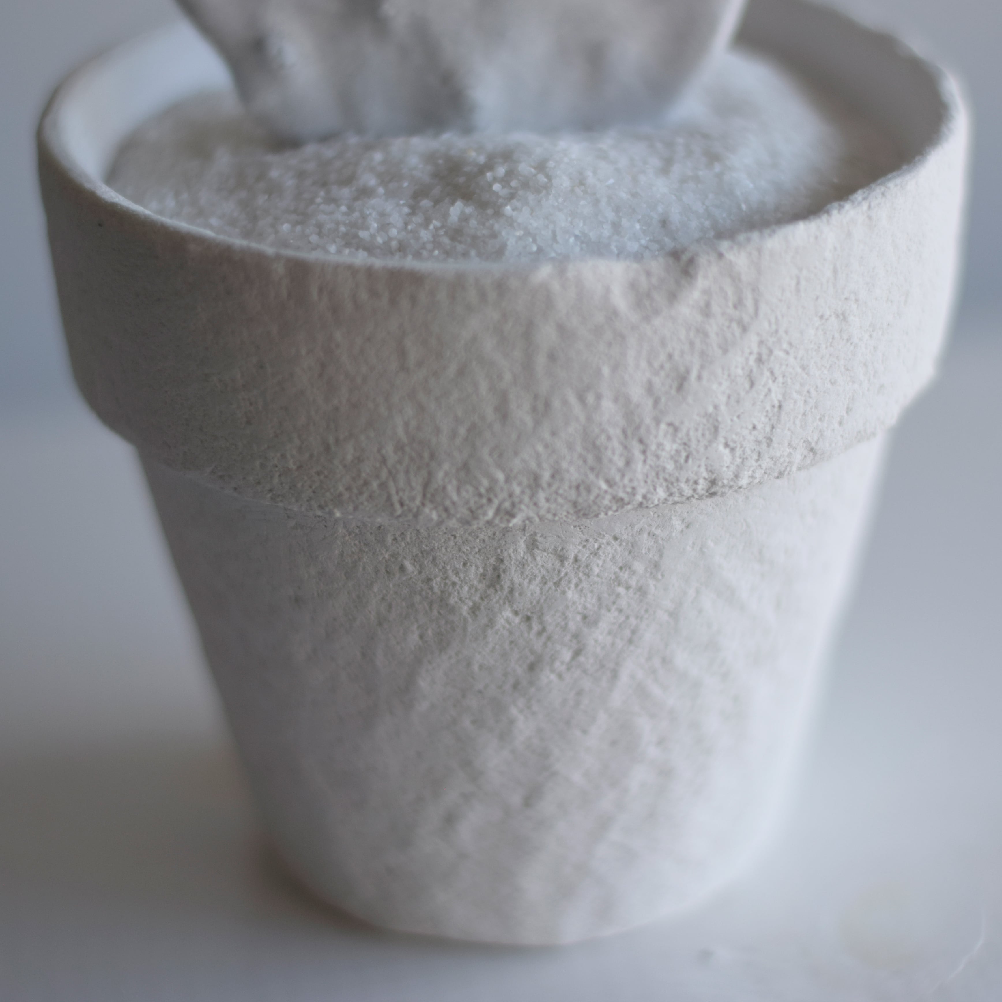 モルタルで自作した植木鉢に植えられている白い樹脂製のサボテンの上にちょこんと座っております。