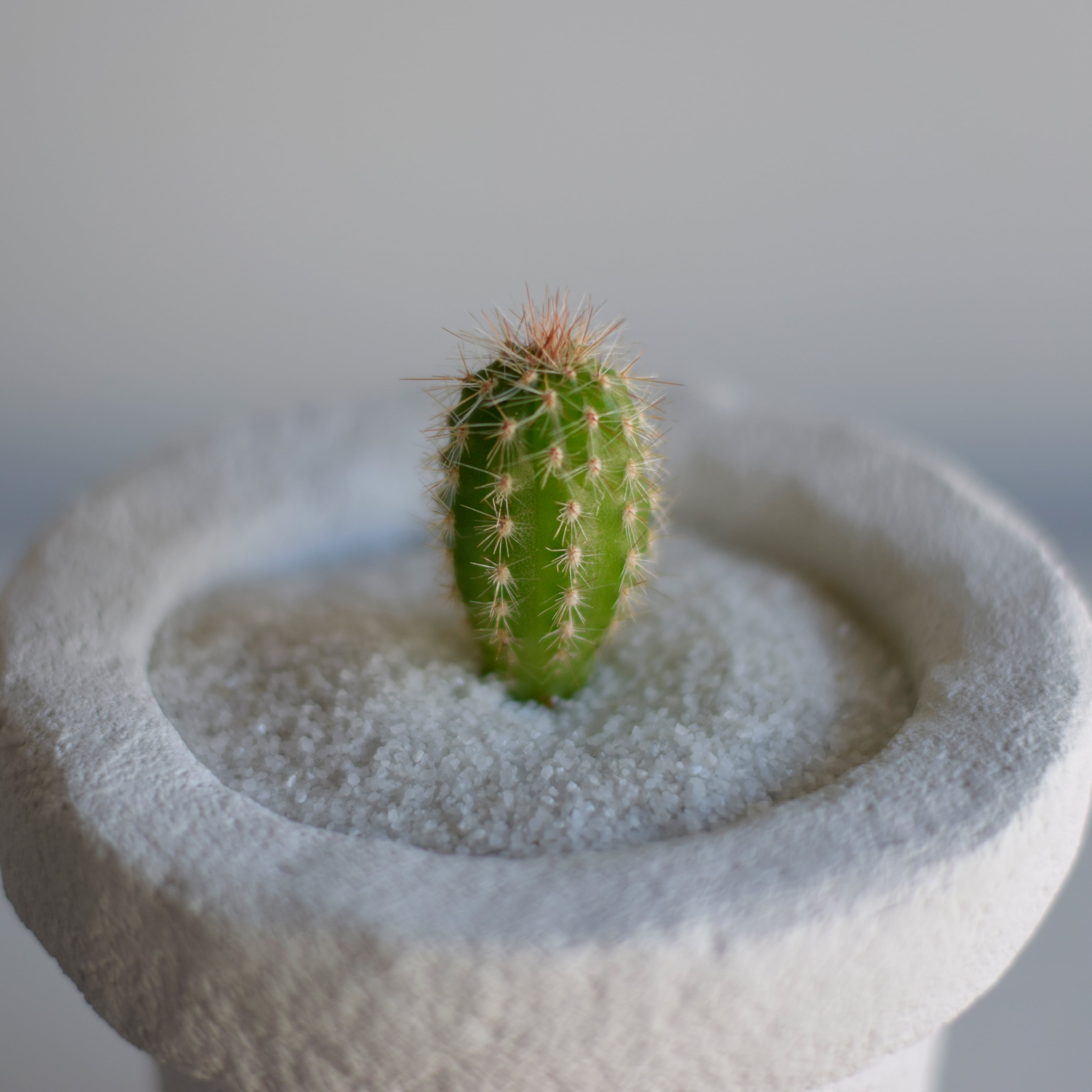 小さなサボテンが植えられたモルタルで自作した植木鉢がついてきます。