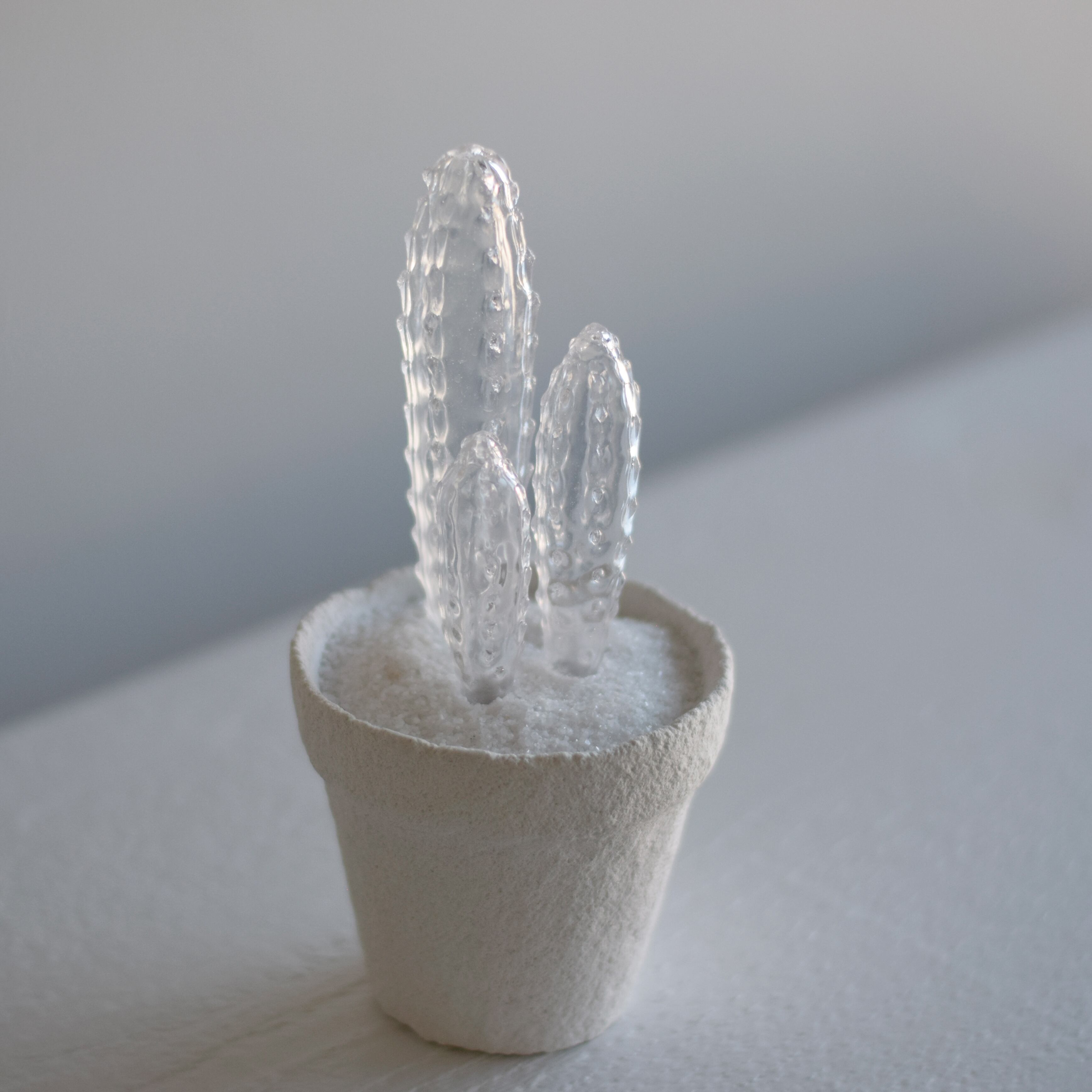透明サボテンは内側が空洞になった薄い(厚さ1ミリ程)透明な樹脂で作った造形作品です。