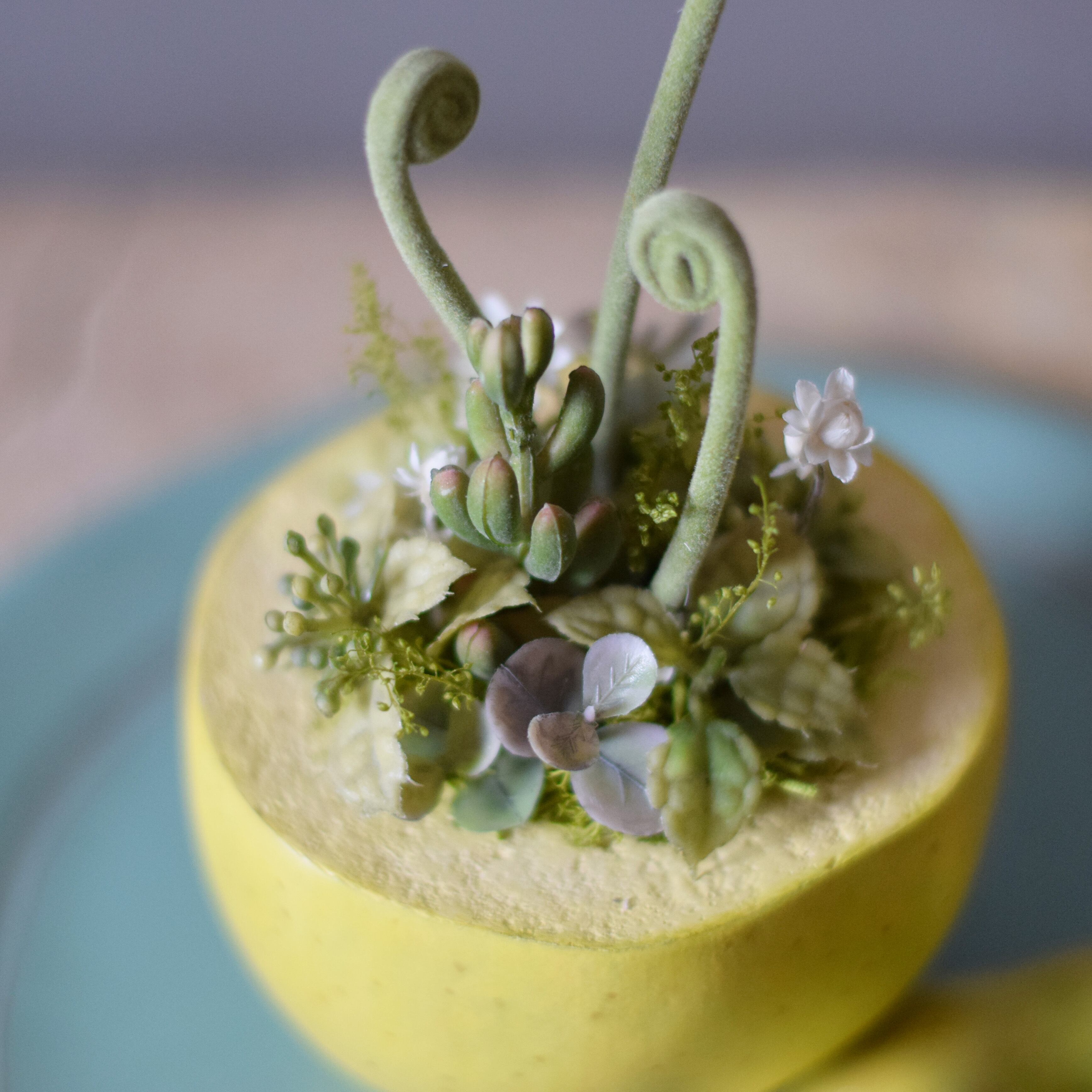 リンゴのプランター、スライスされた蓋のパーツ、植物の寄せ植えのセットです。