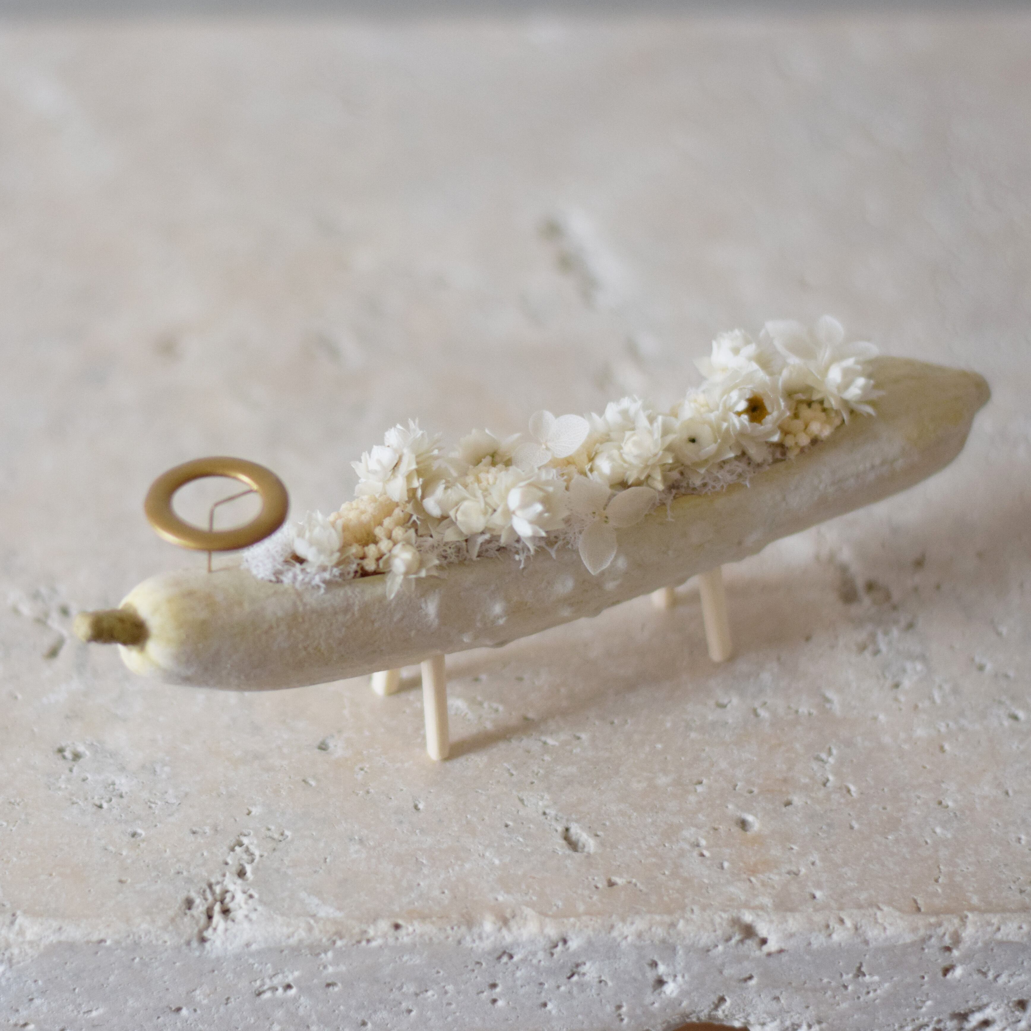 お花が咲いて賑やかな樹脂製の精霊馬のプランターオブジェです。
