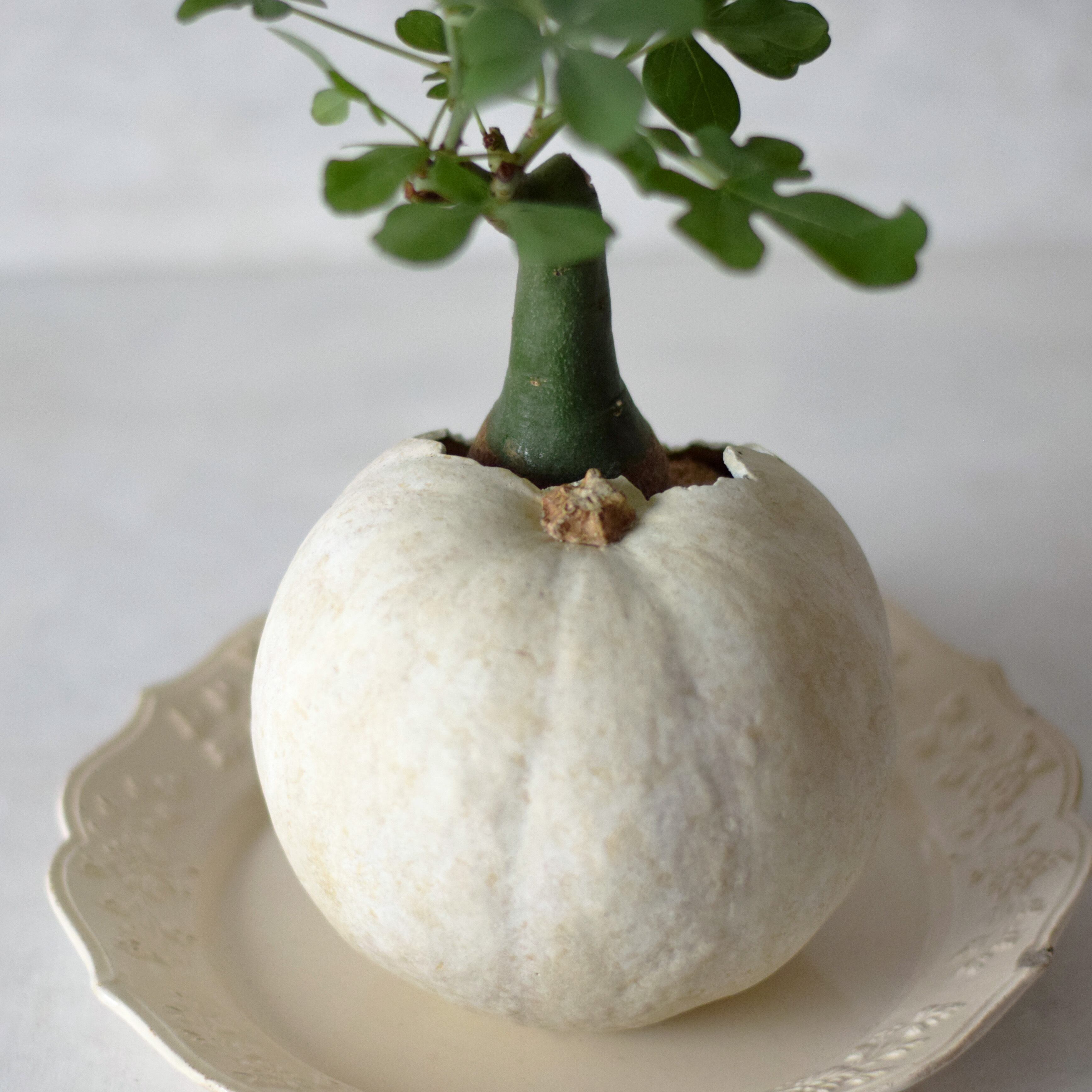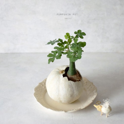 グリーンが似合う白くて上品な樹脂製かぼちゃのプランターオブジェです。
