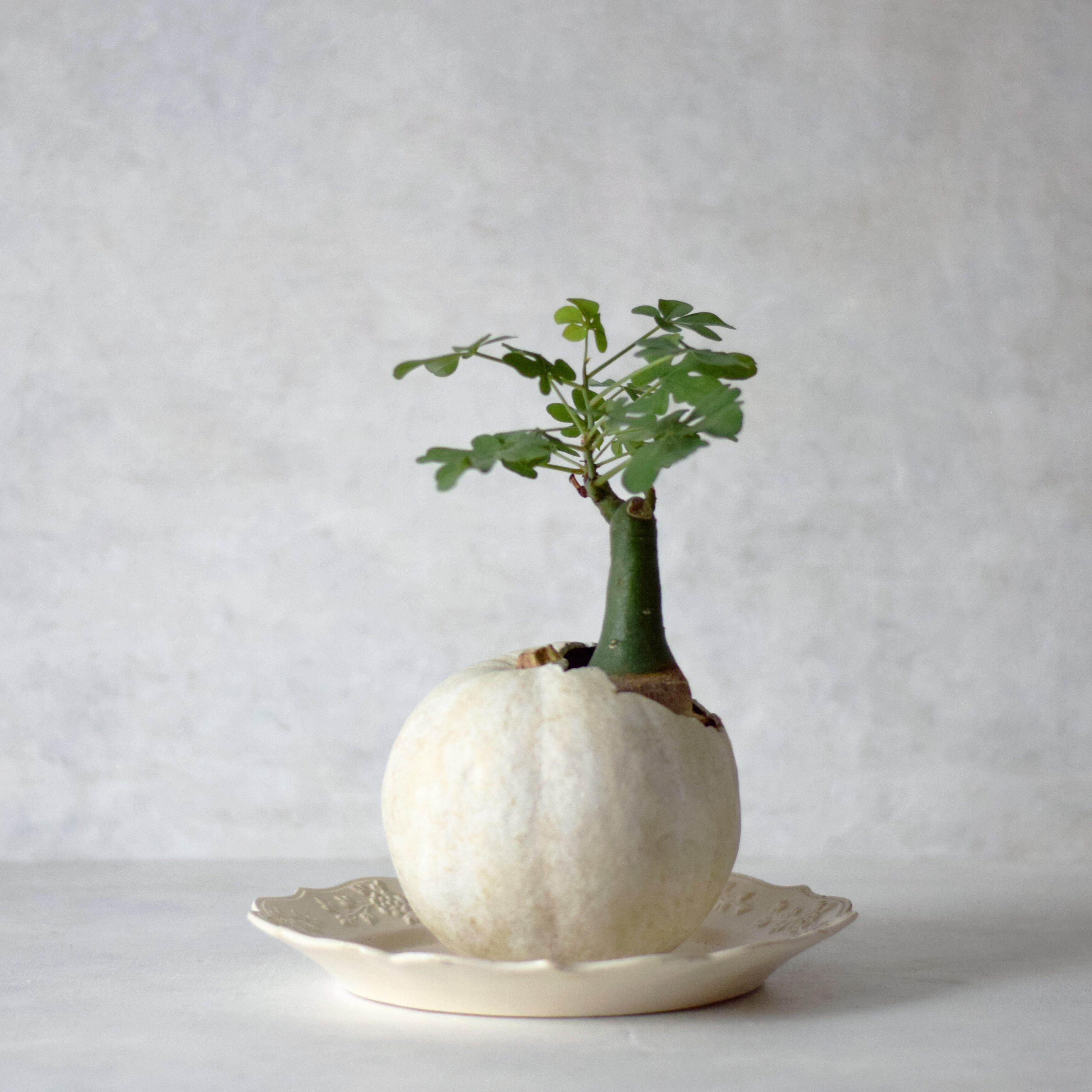 塊根植物アデニア・グラウカを植えています。日当りと風通しのいい場所に置いてください。