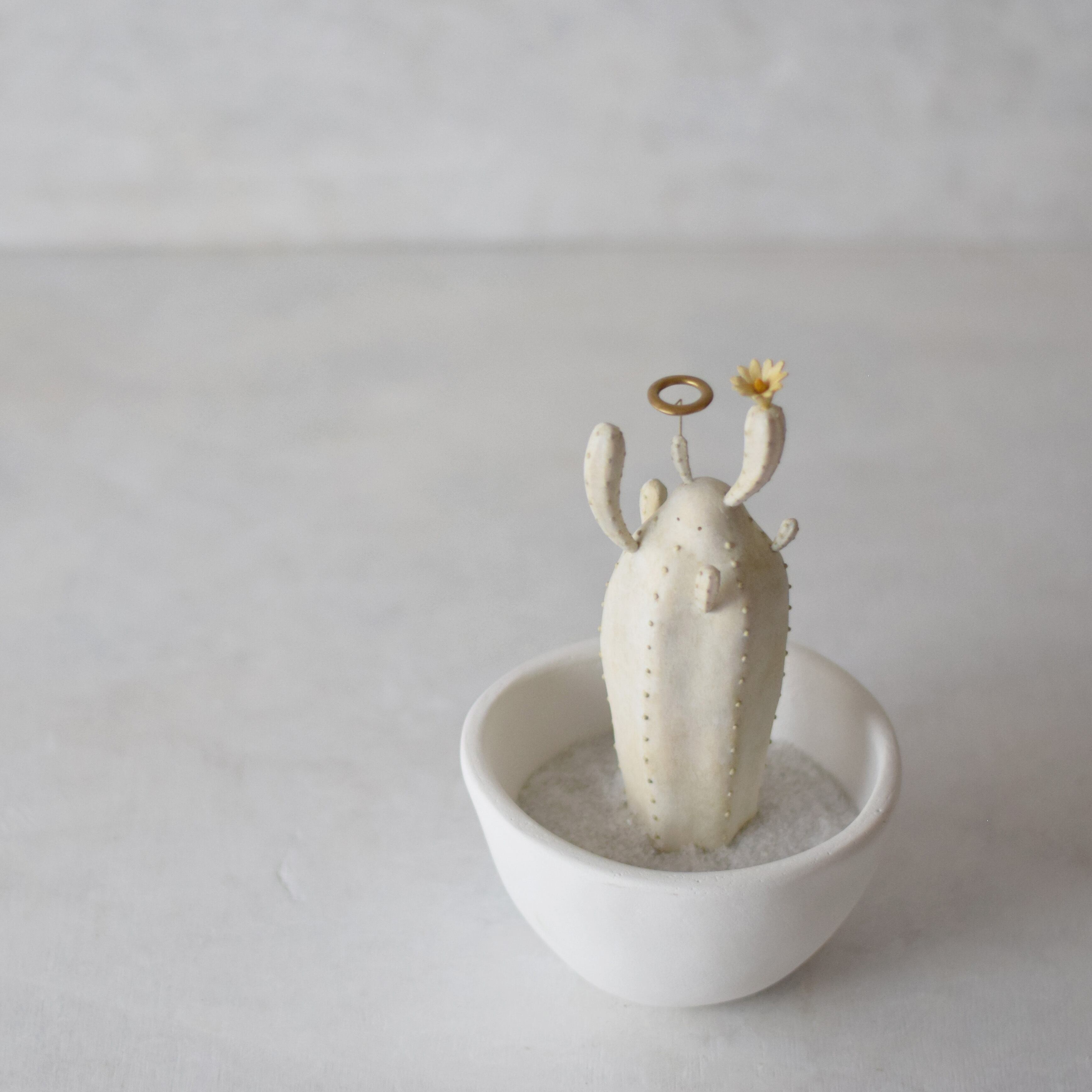 サボテン幽霊は樹脂製オブジェで作品に合わせて手作りしたホワイトモルタルの器とのセットです。