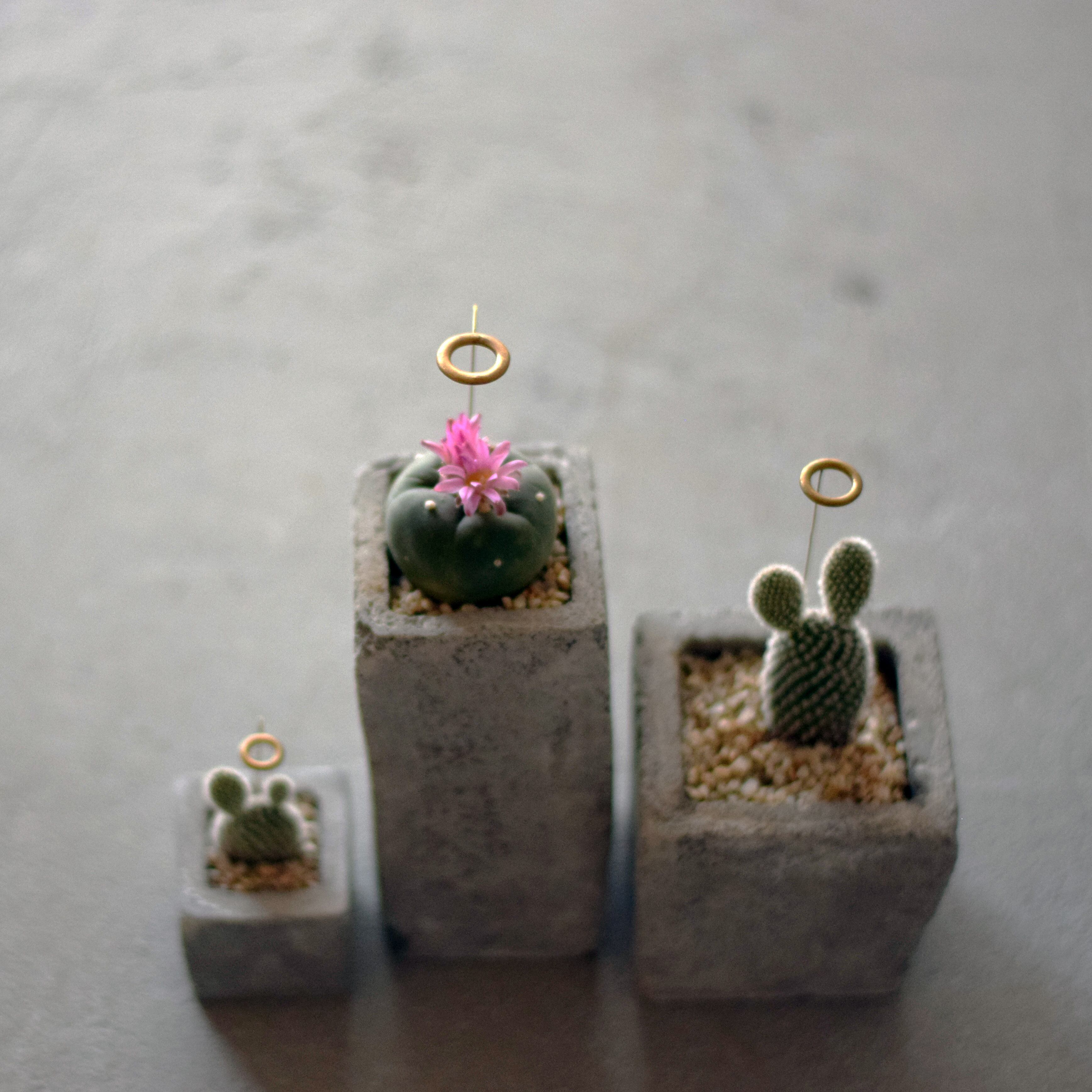 私はかわいいサボテンに祝福の気持ちを込め天使の輪をつけます。