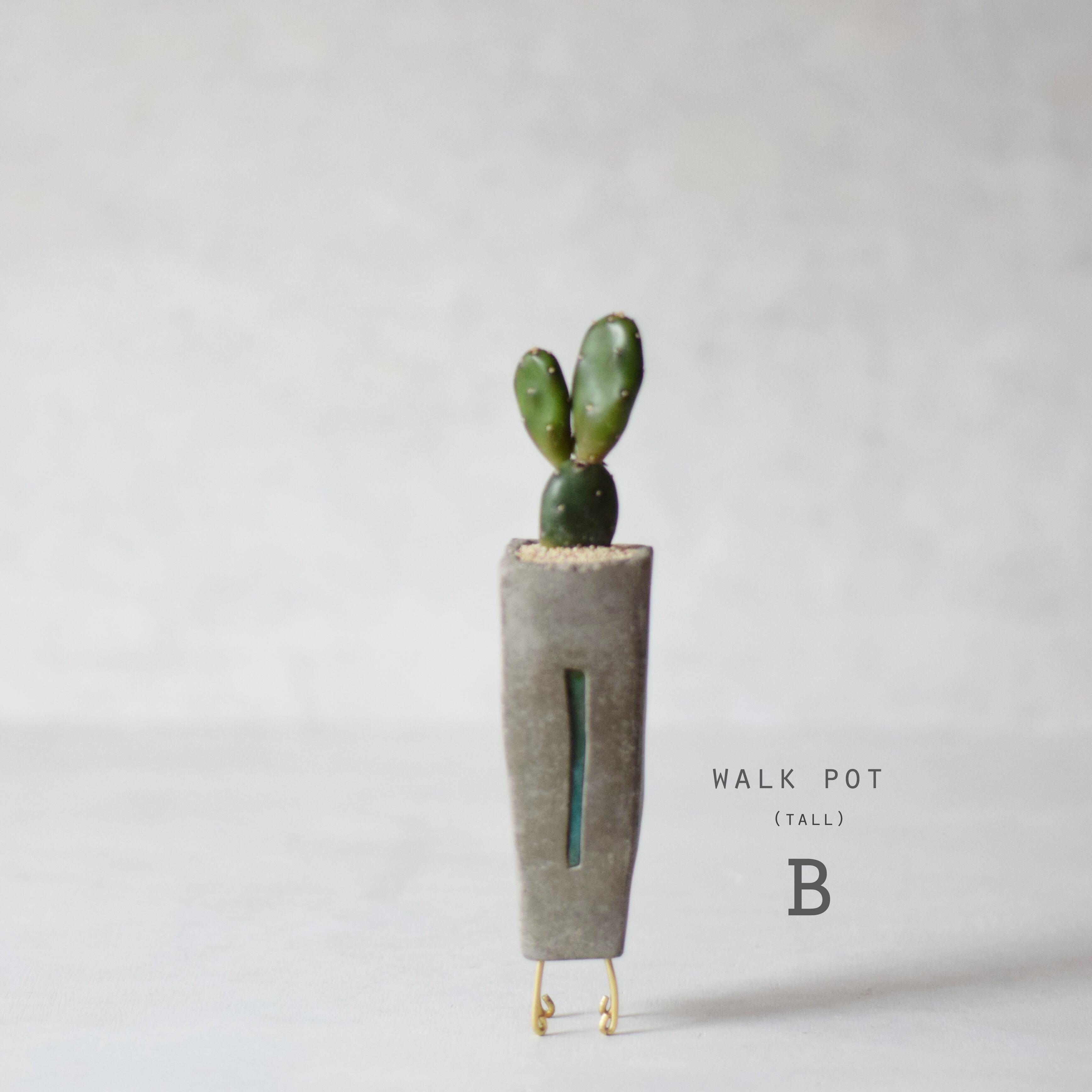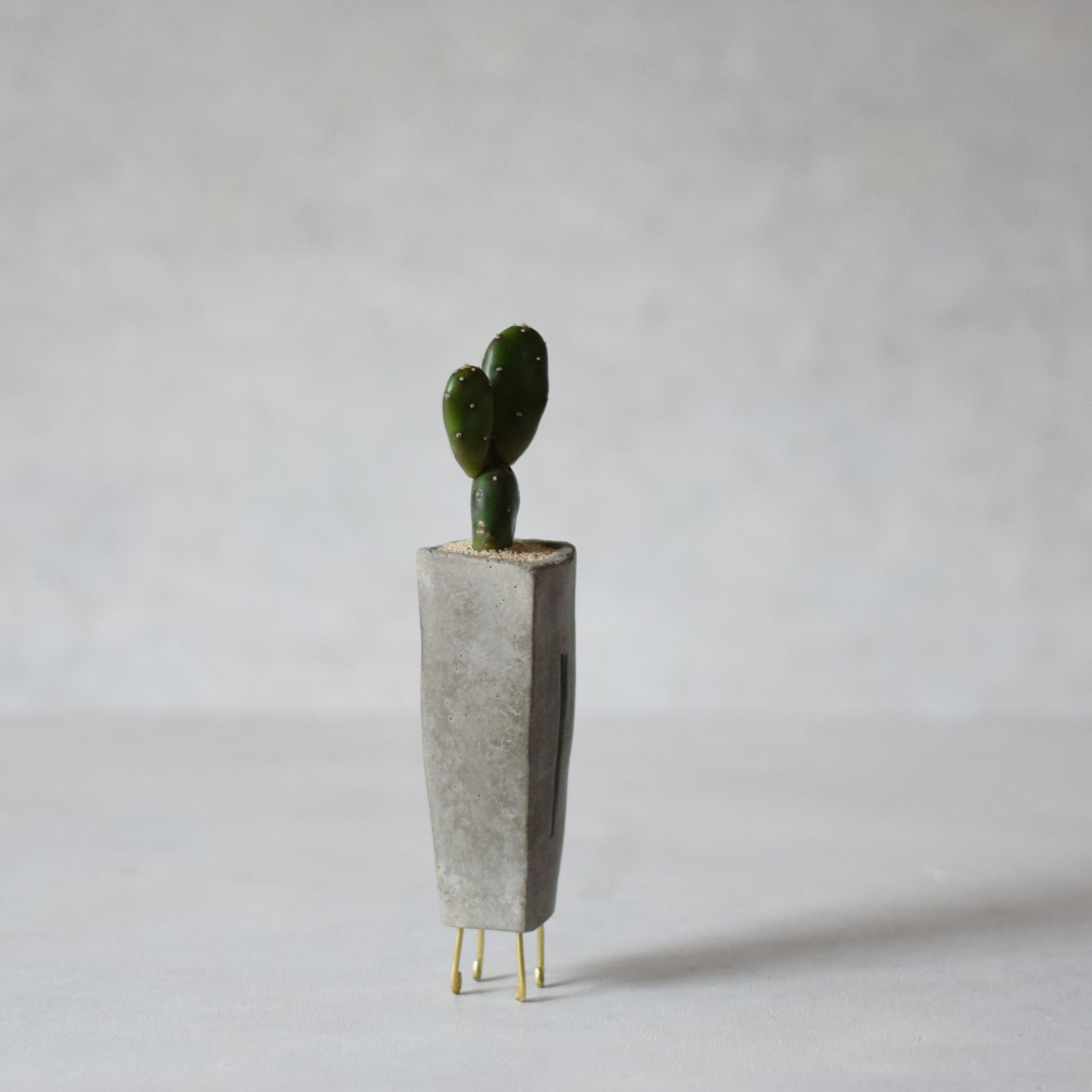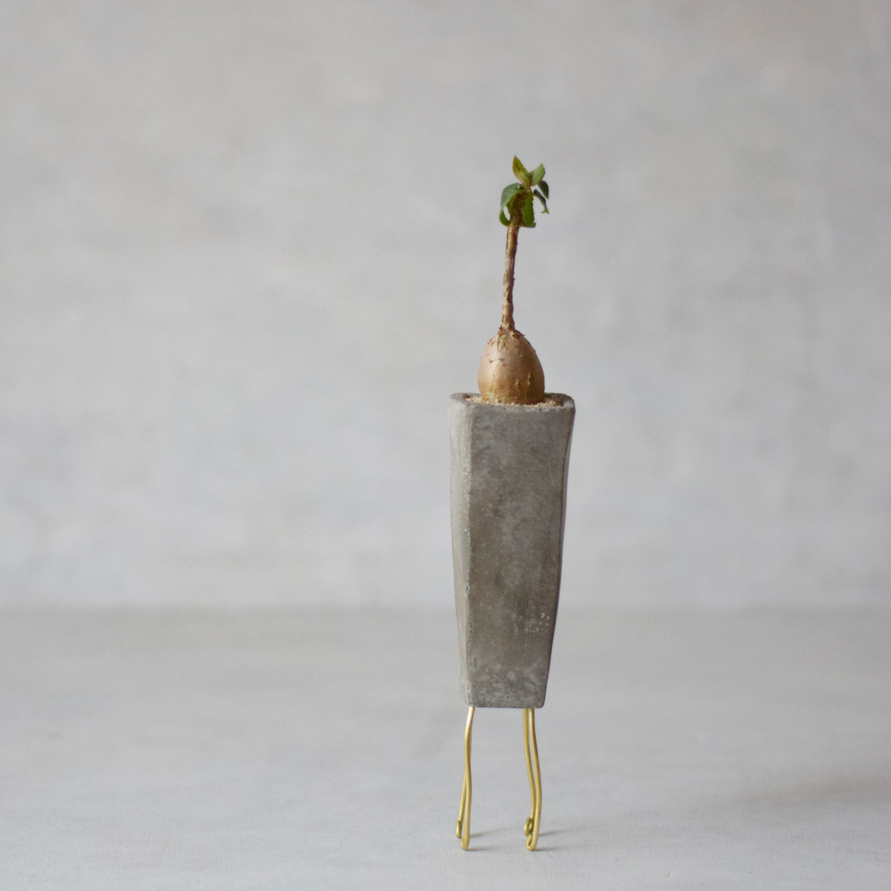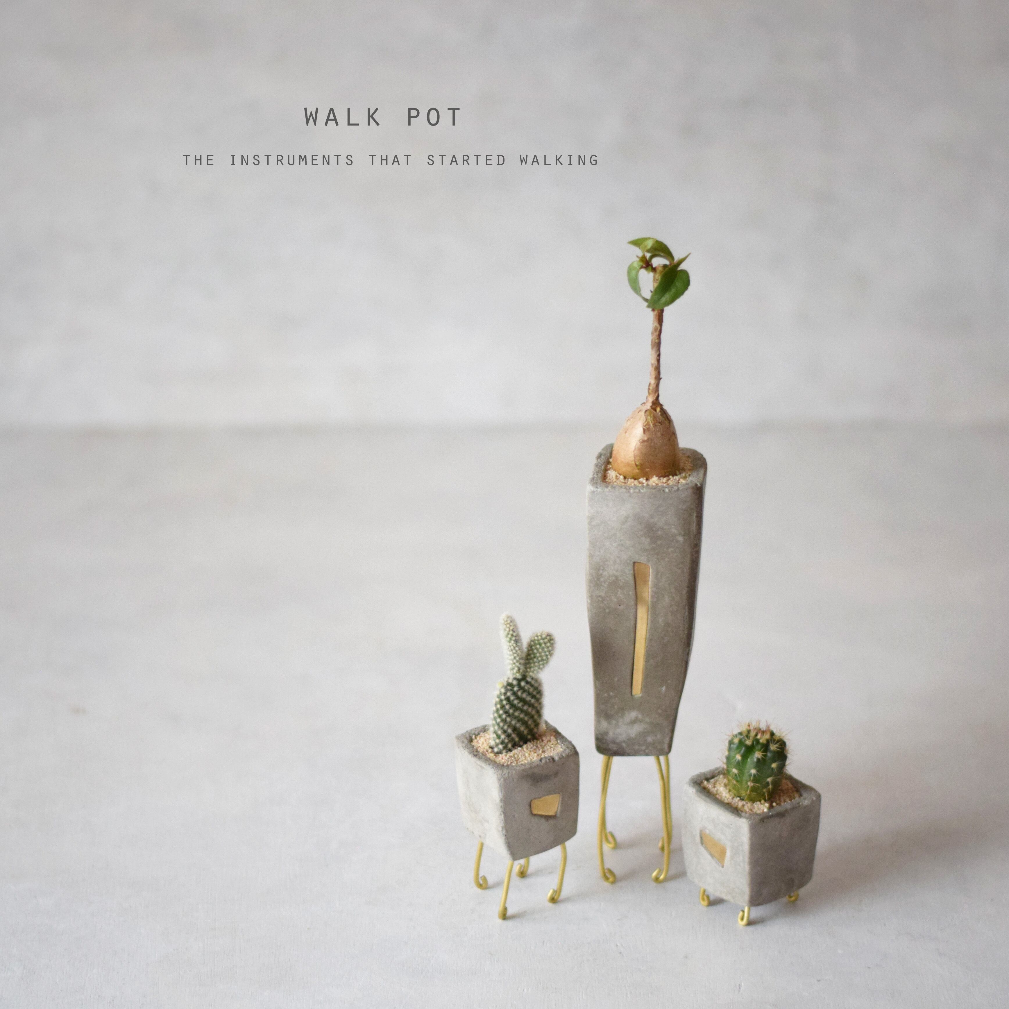 じっとしてるのに飽きちゃって、ついに歩き出したモルタル製の小さな植木鉢です。