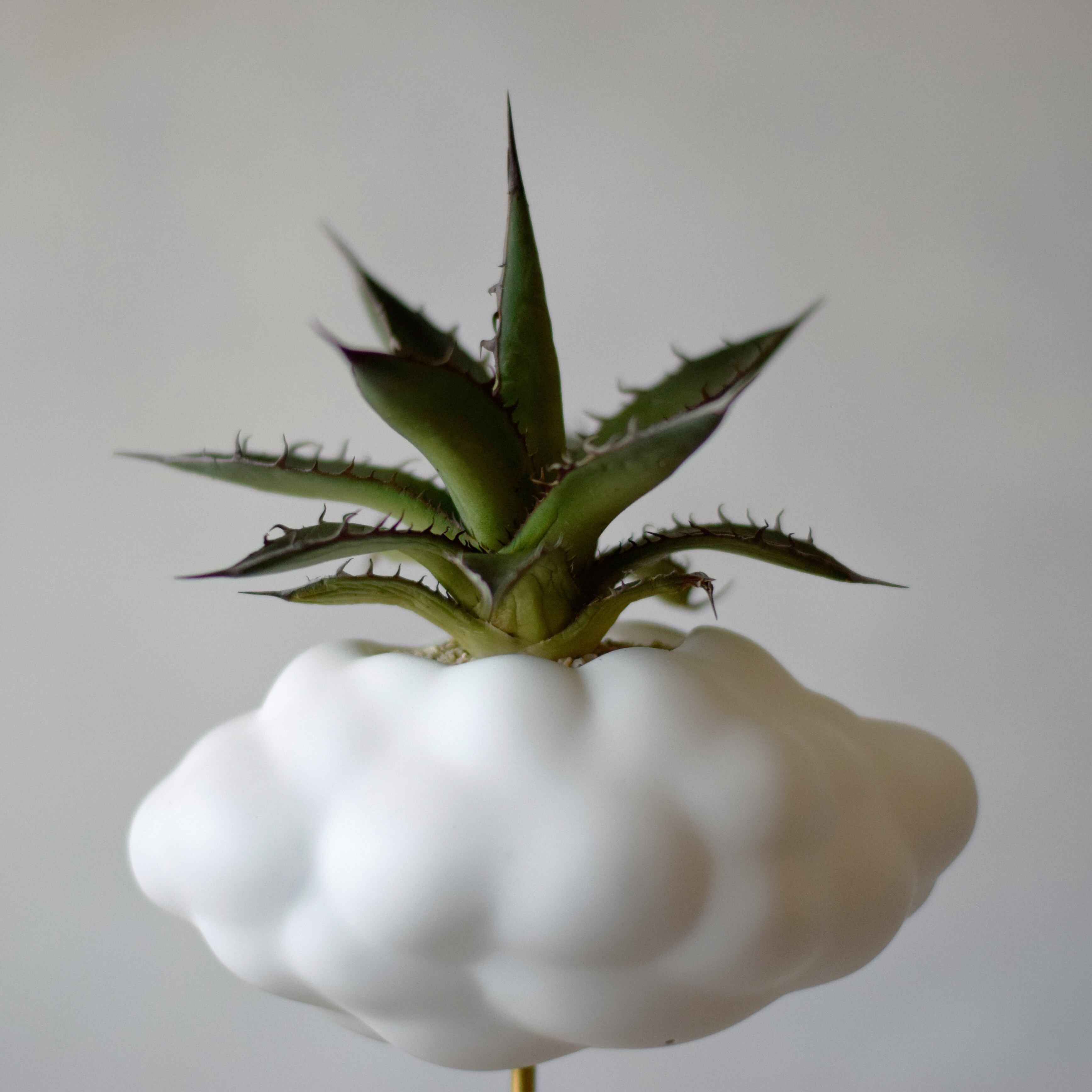 中は空洞になっていて土が入っておりアガベホリダを植えています。