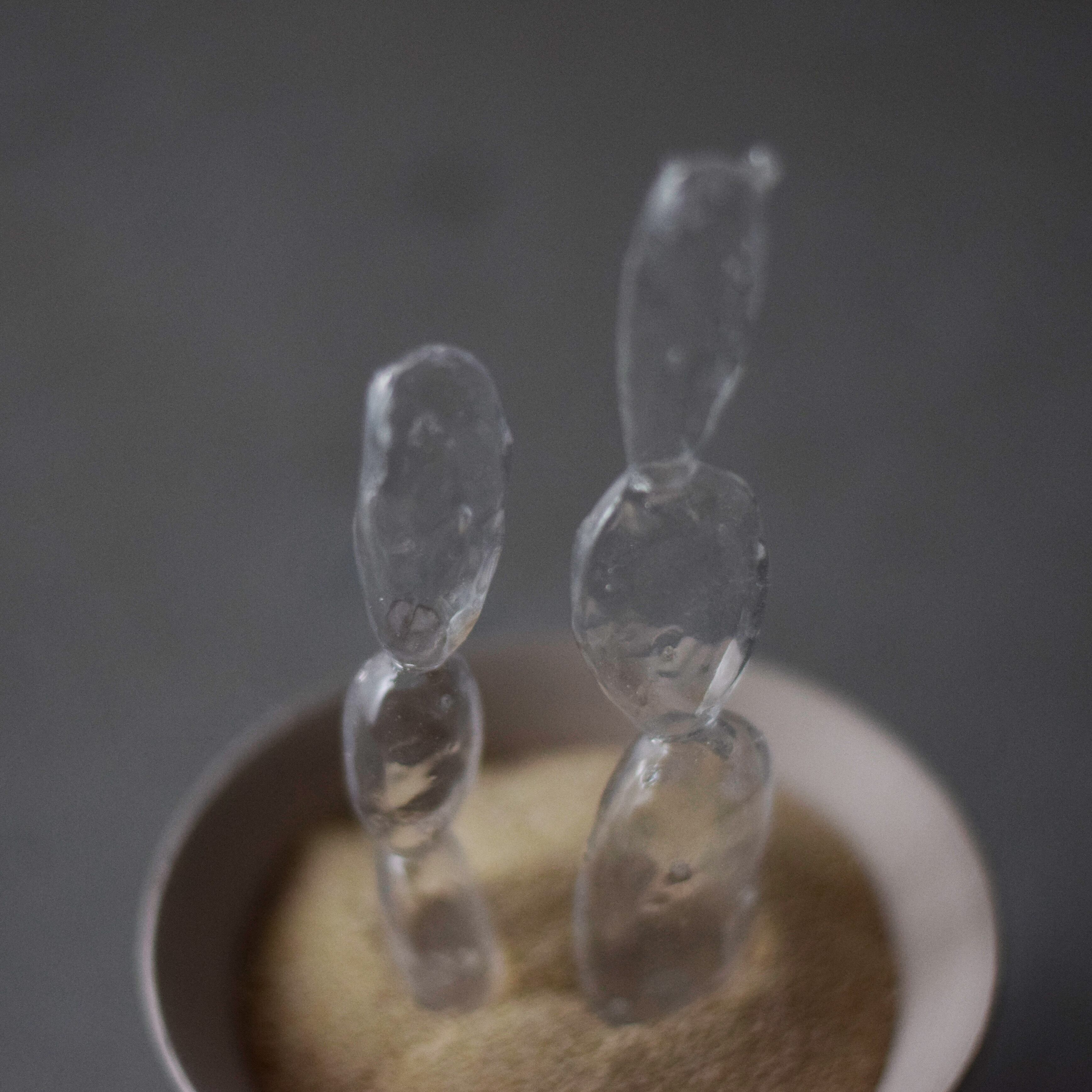 本体に色は無く周囲の景色を映しこんだり、溶けこんだりしてひっそりと育っております。