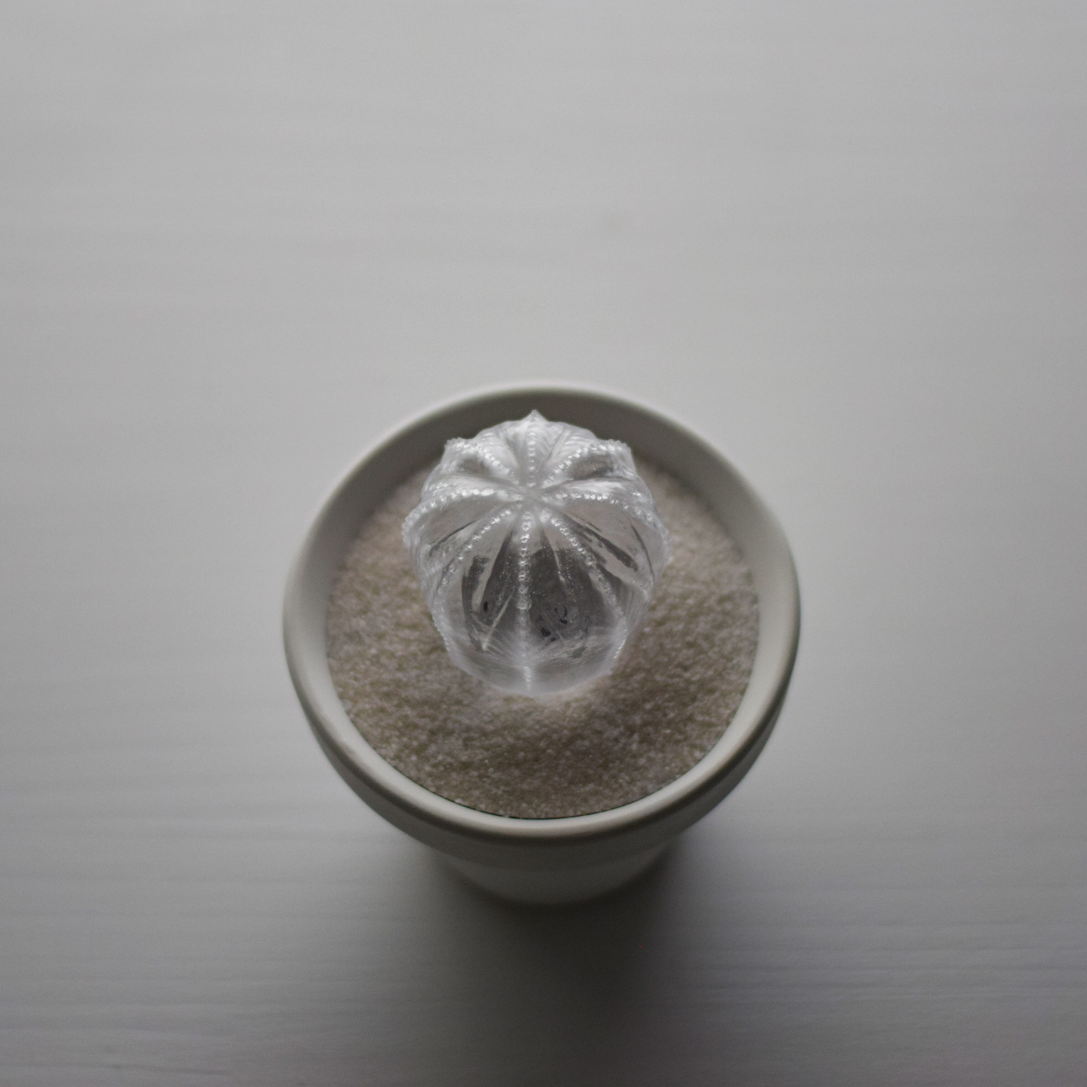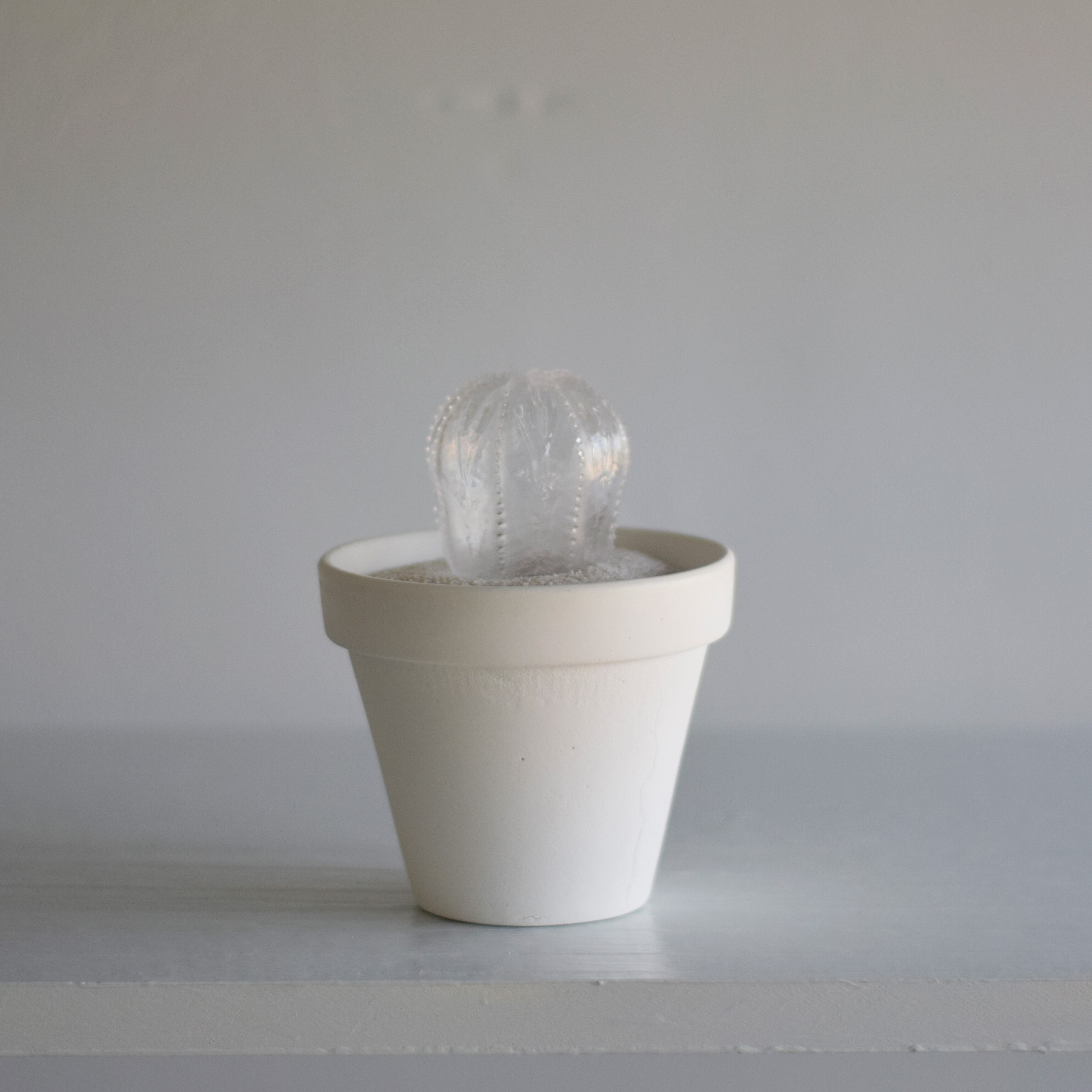 透明で空っぽなサボテンです。中身はなく色素を失い、それは記憶の輪郭のような「空白植物」です。
