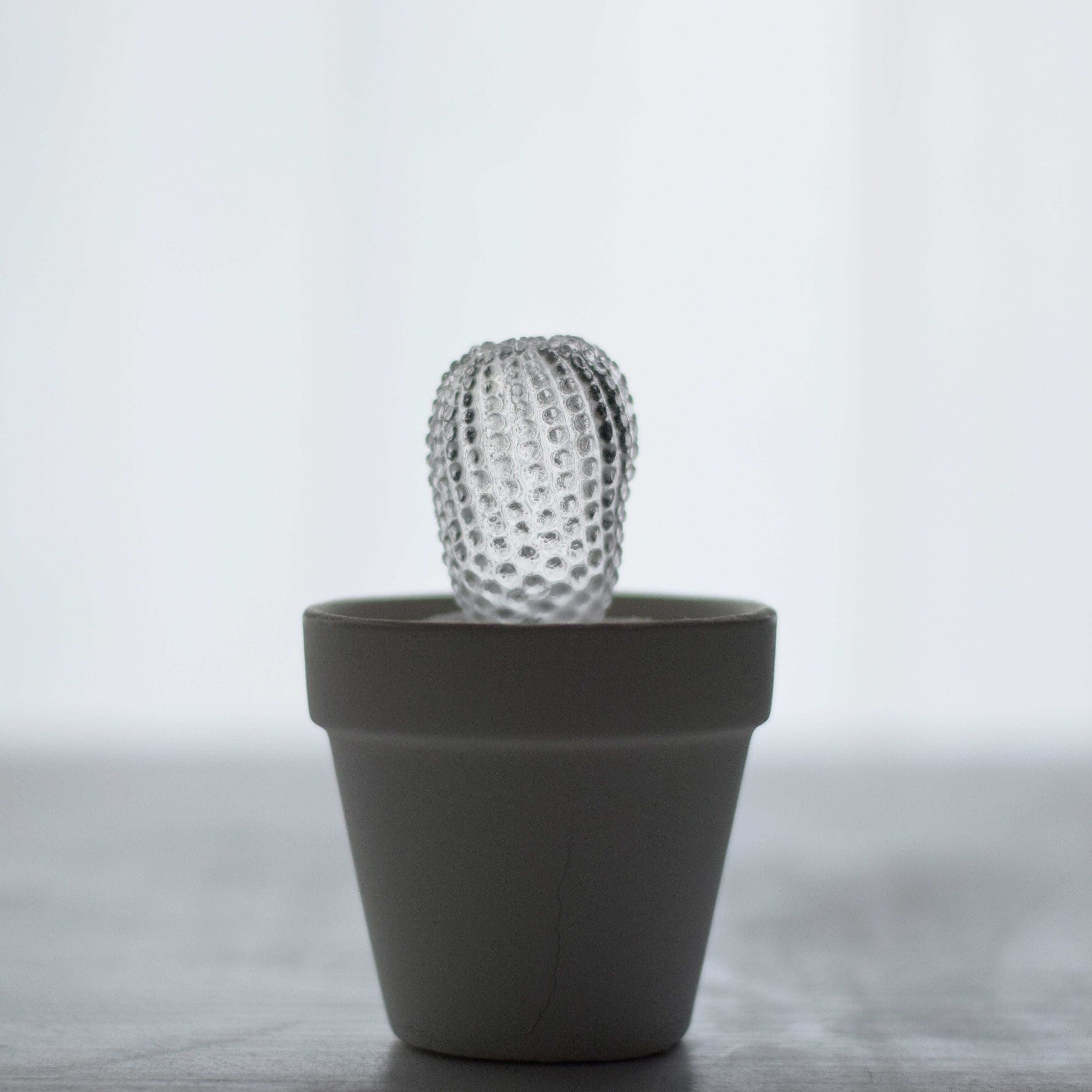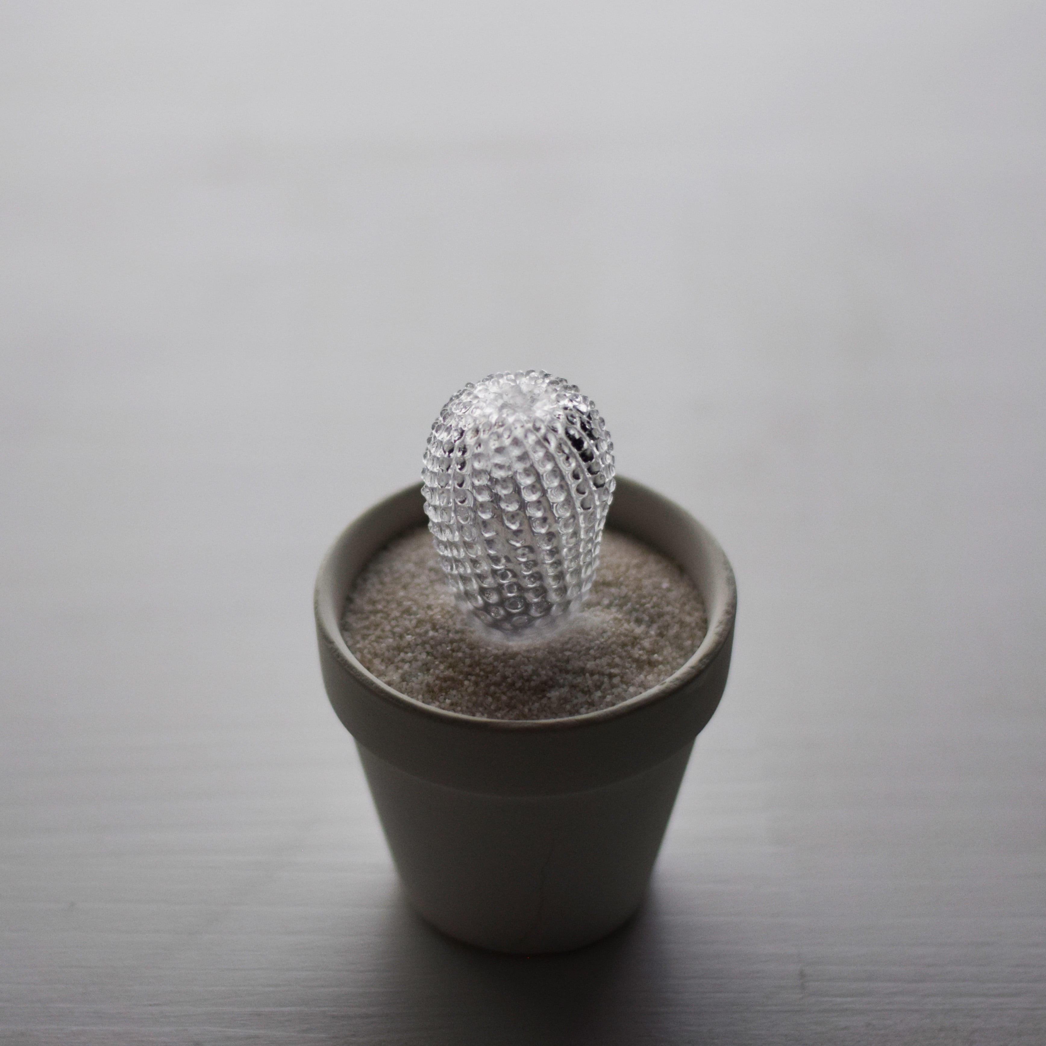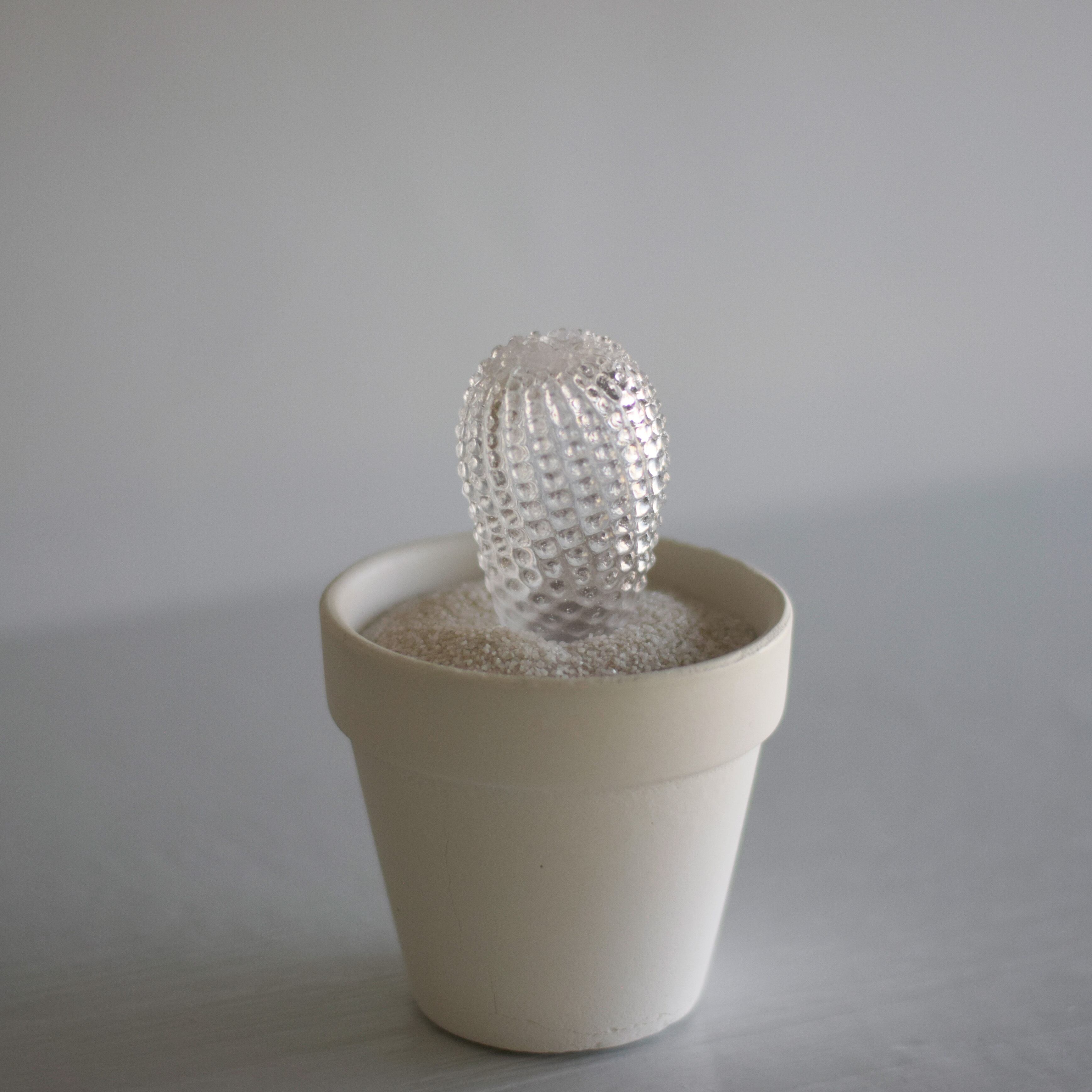 透明で空っぽなサボテンです。中身はなく色素を失い、それは記憶の輪郭のような「空白植物」です。