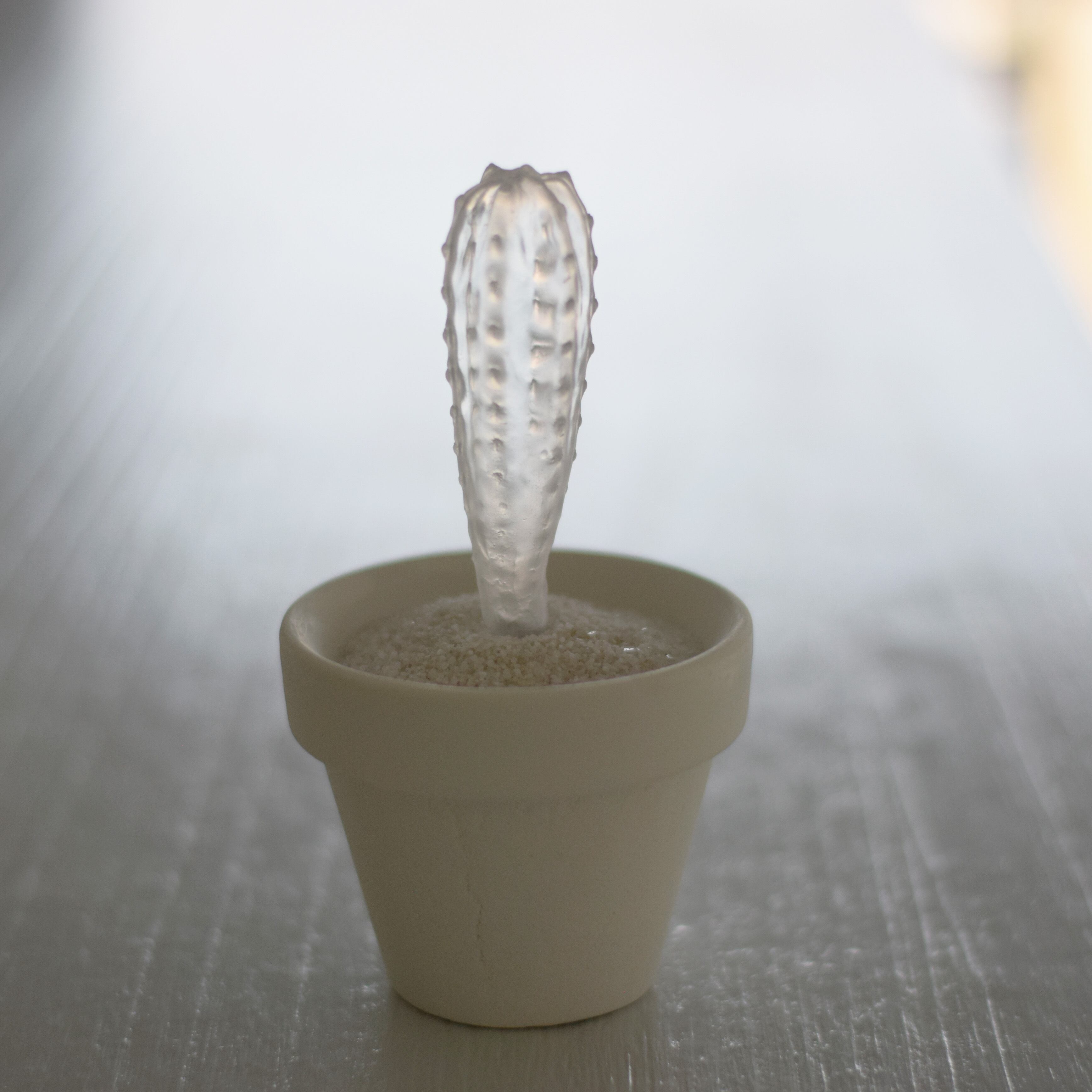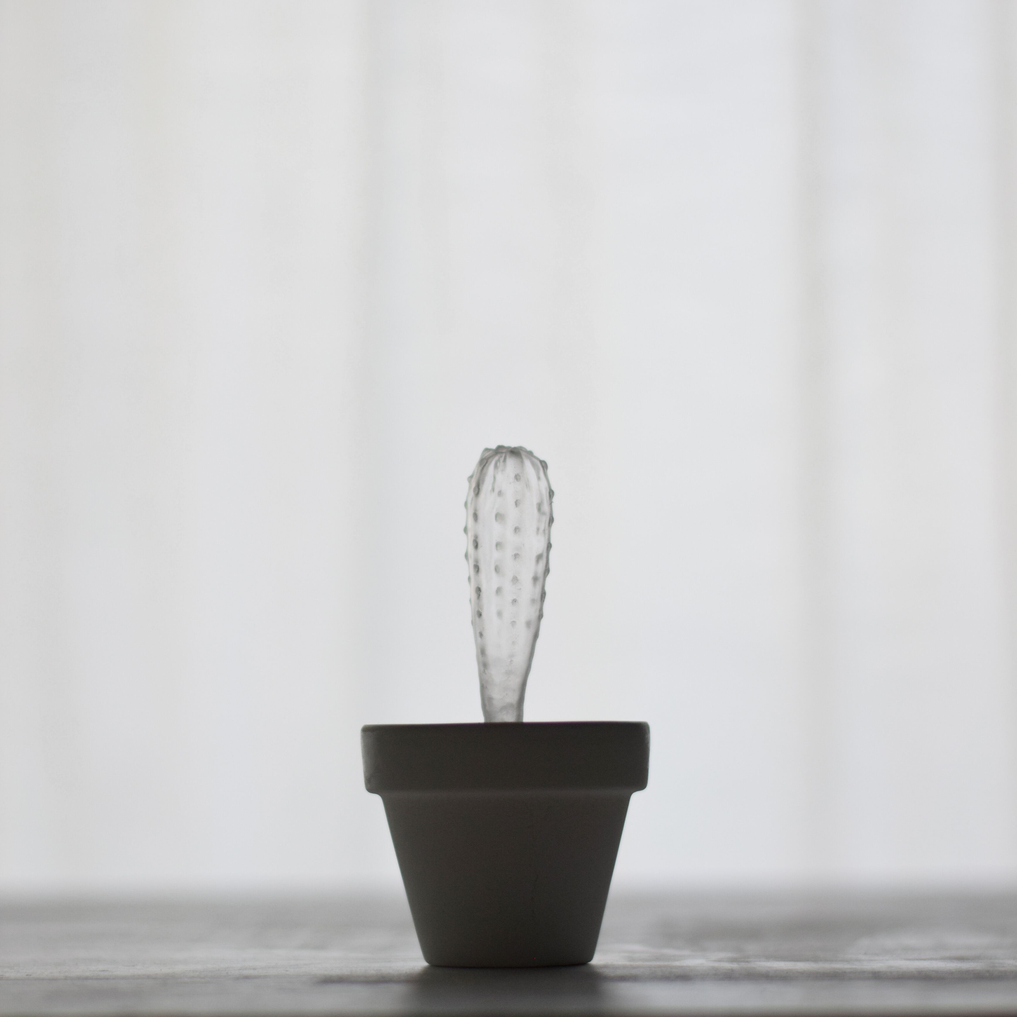 透明で空っぽなサボテンです。中身はなく色素を失い、それは記憶の輪郭のような「空白植物」です。