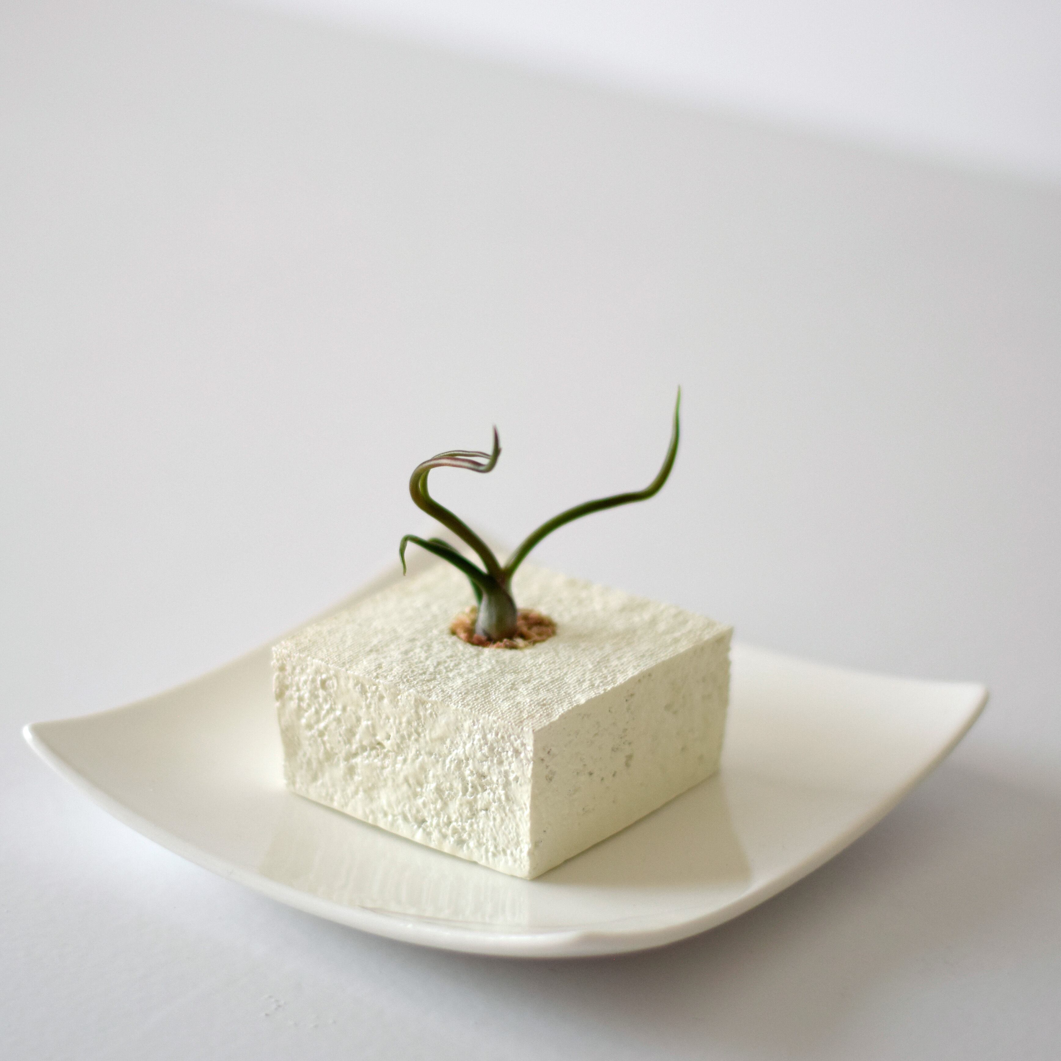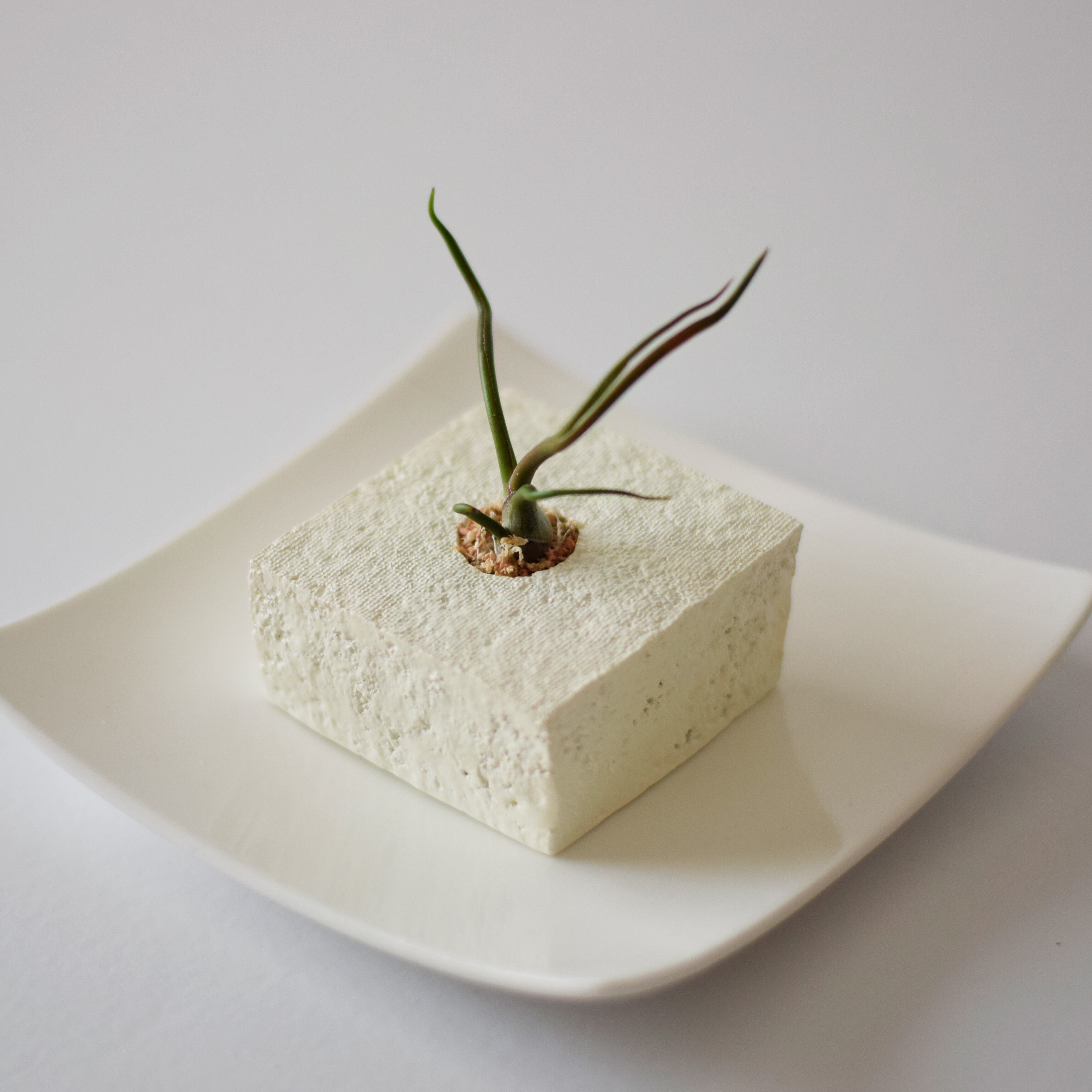 白くて素朴な質感のお豆腐は植物がよく似合うと思い制作いたしました。