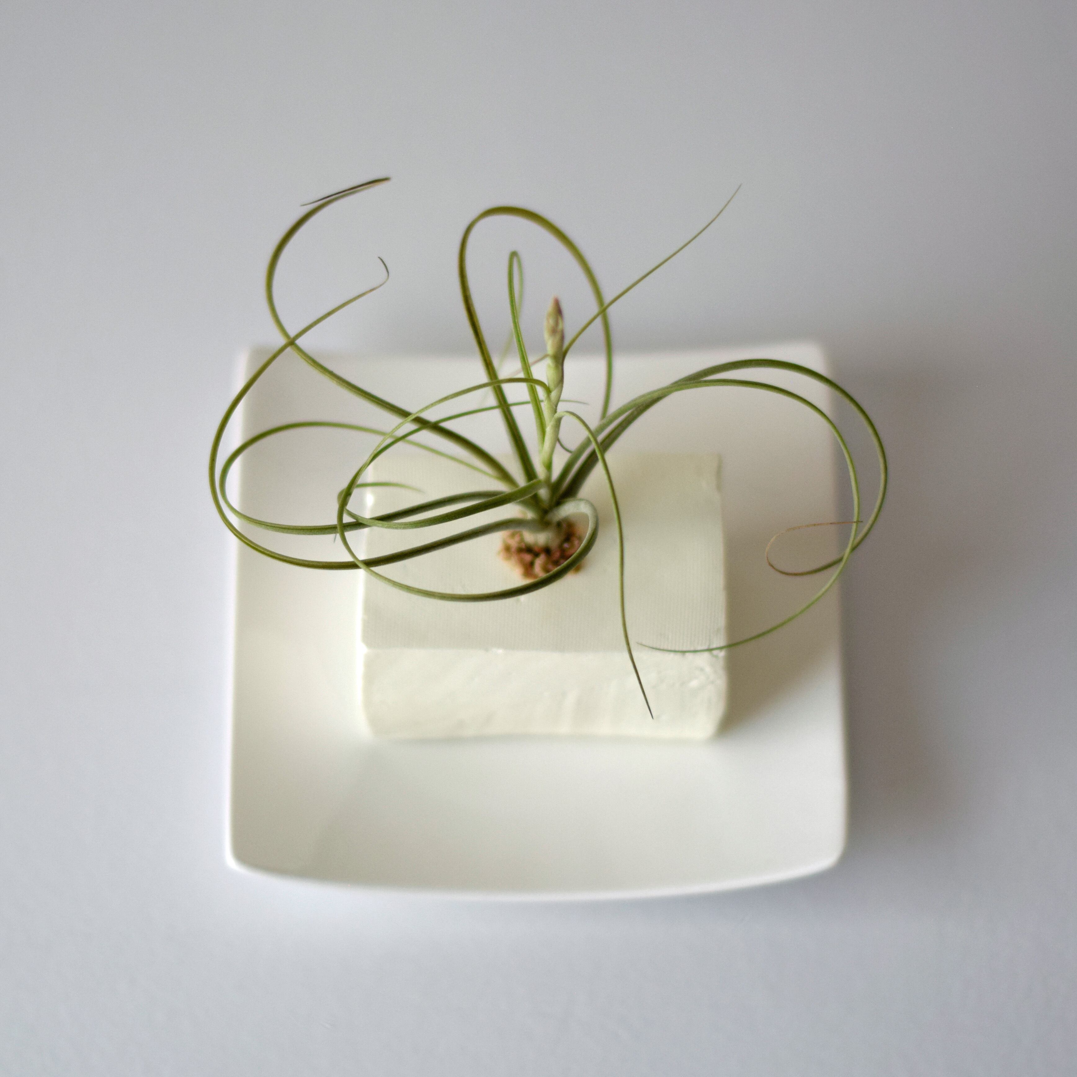 白くて素朴な質感のお豆腐は植物がよく似合うと思い制作いたしました。