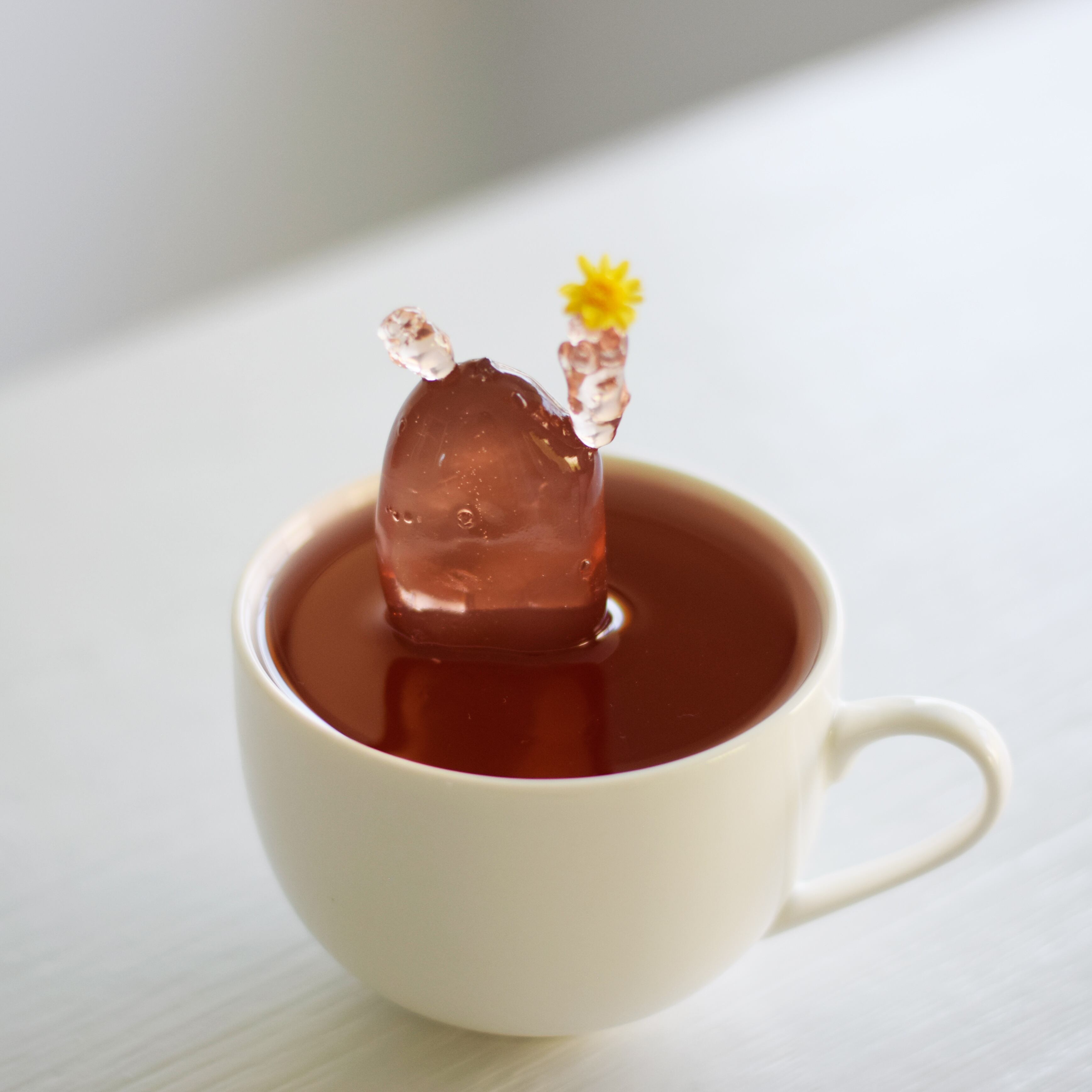 ティーカクタスはく茶色の透明な樹脂で作った造形作品です。
