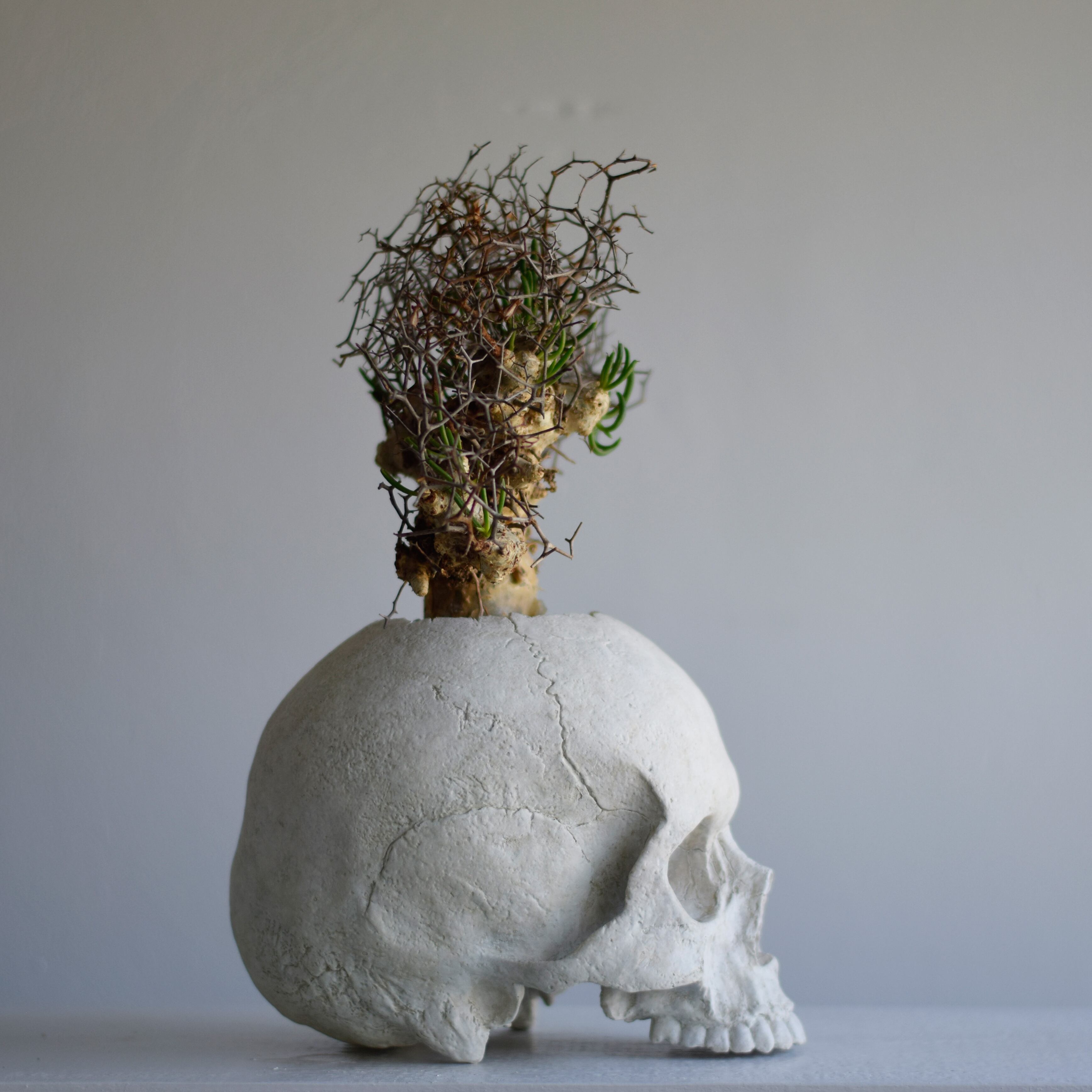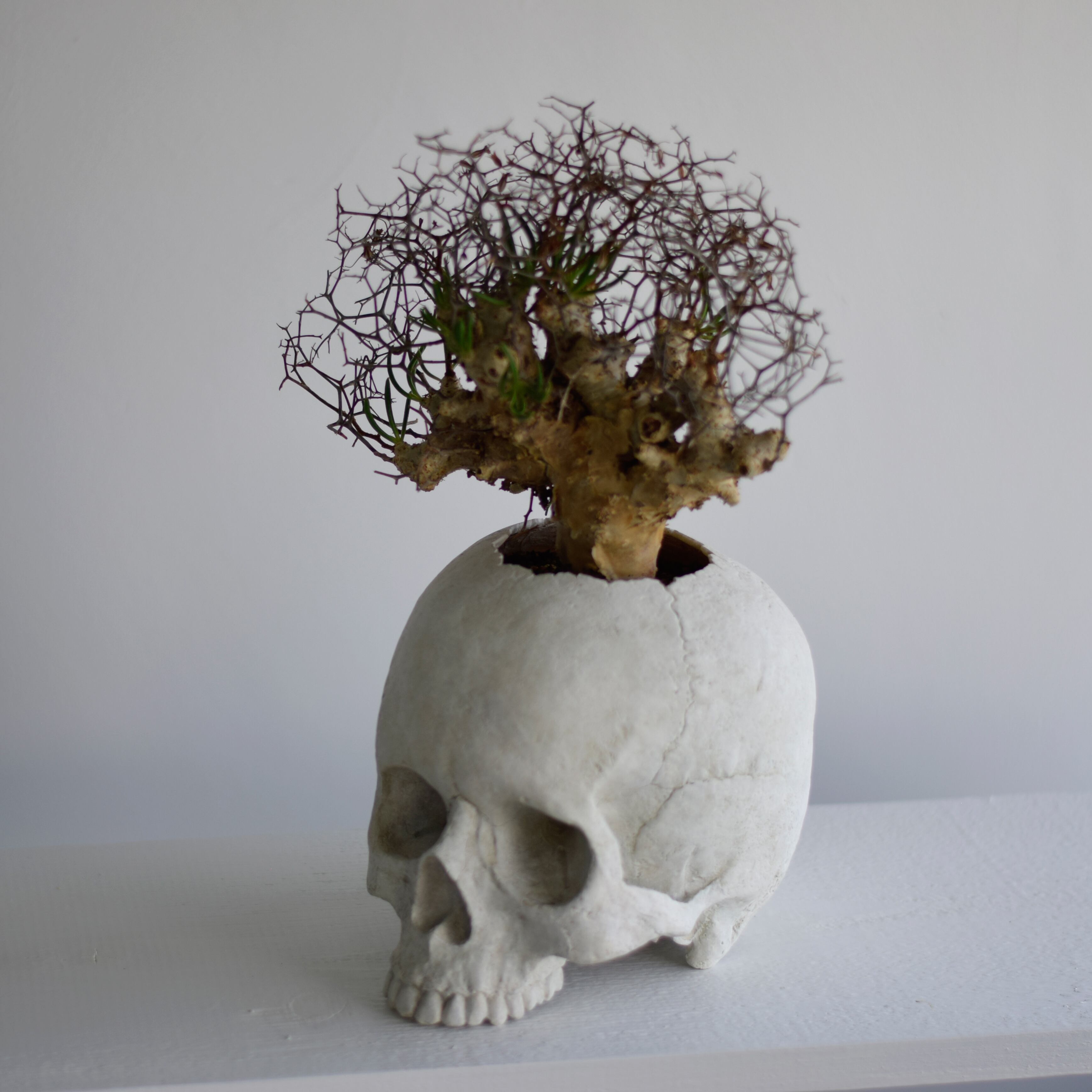 樹脂製の人の頭骨のプランター、内側は空洞になっていて土を入れられます。