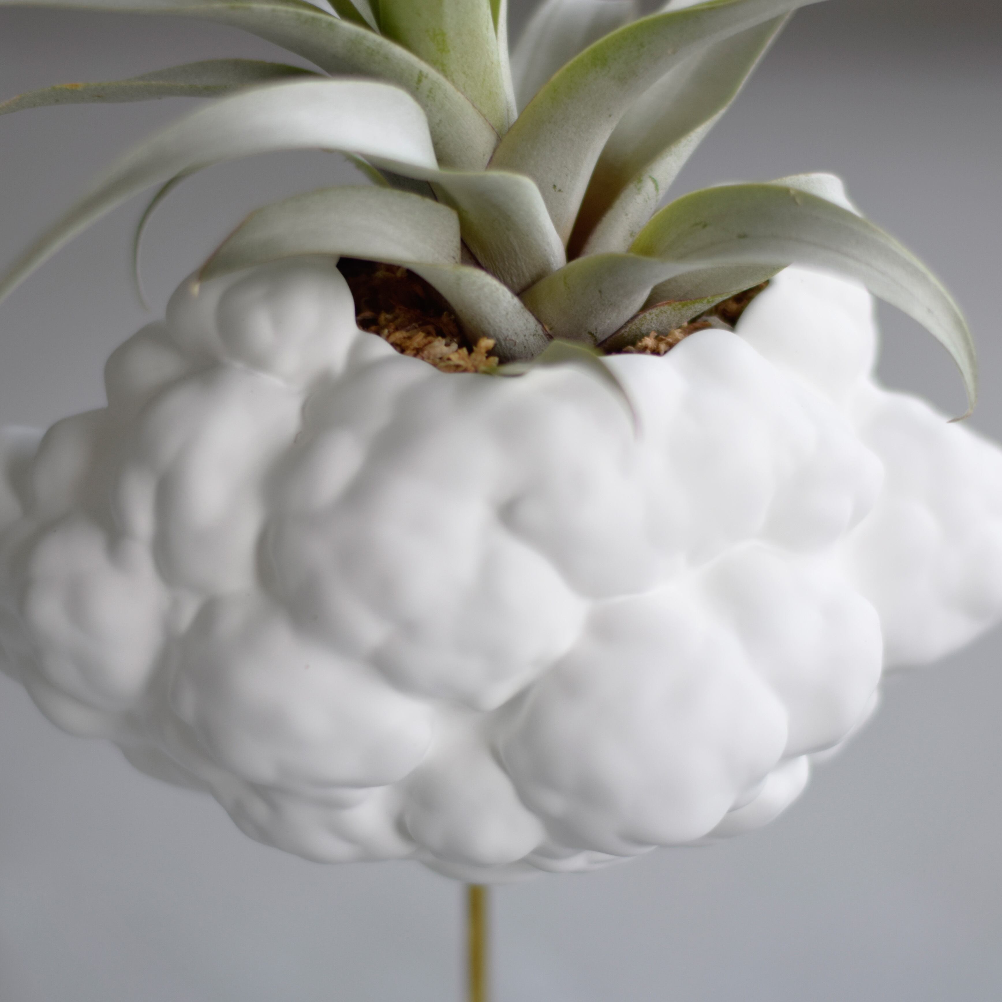 植物が乗って浮かんでいる樹脂製のもくもく雲のプランターです。