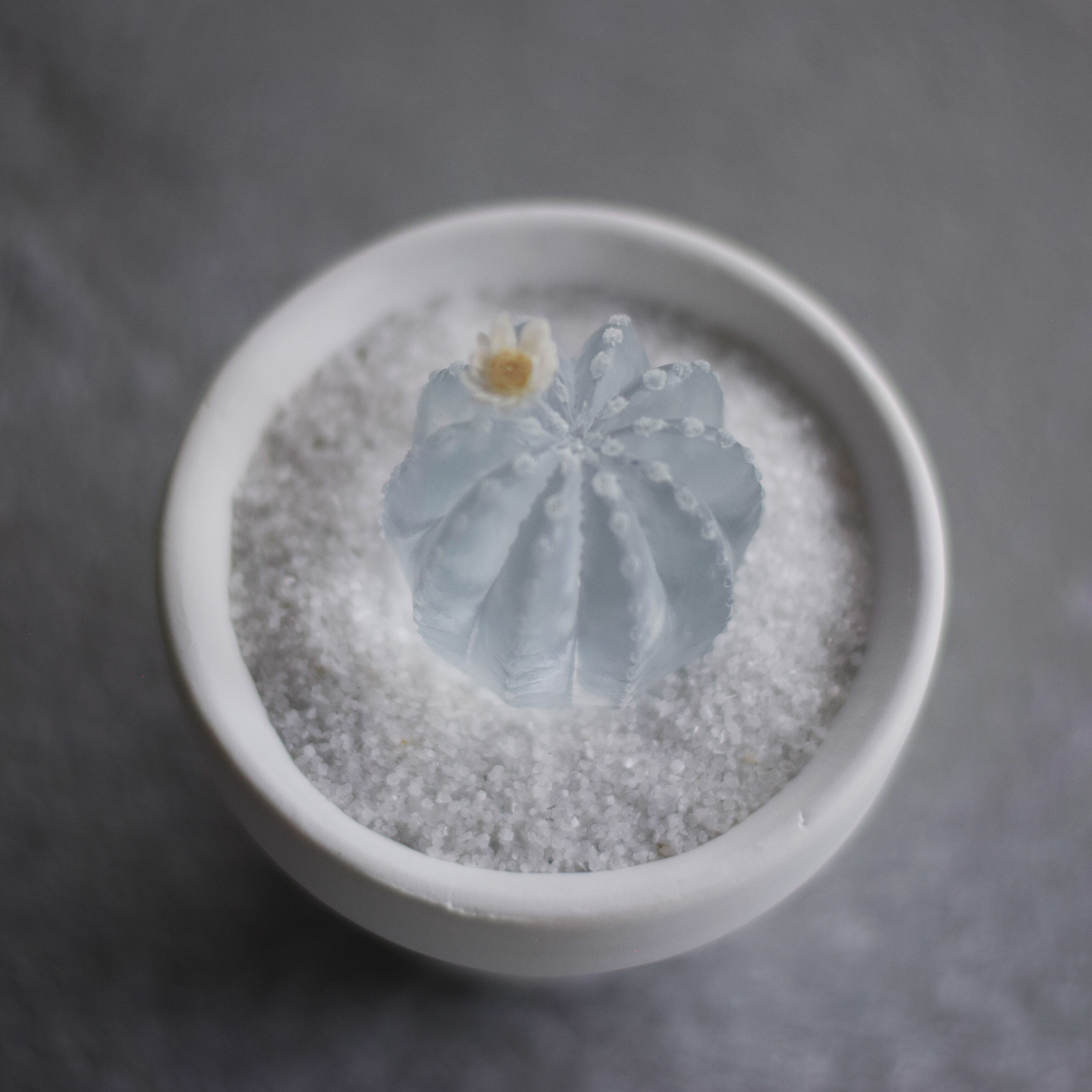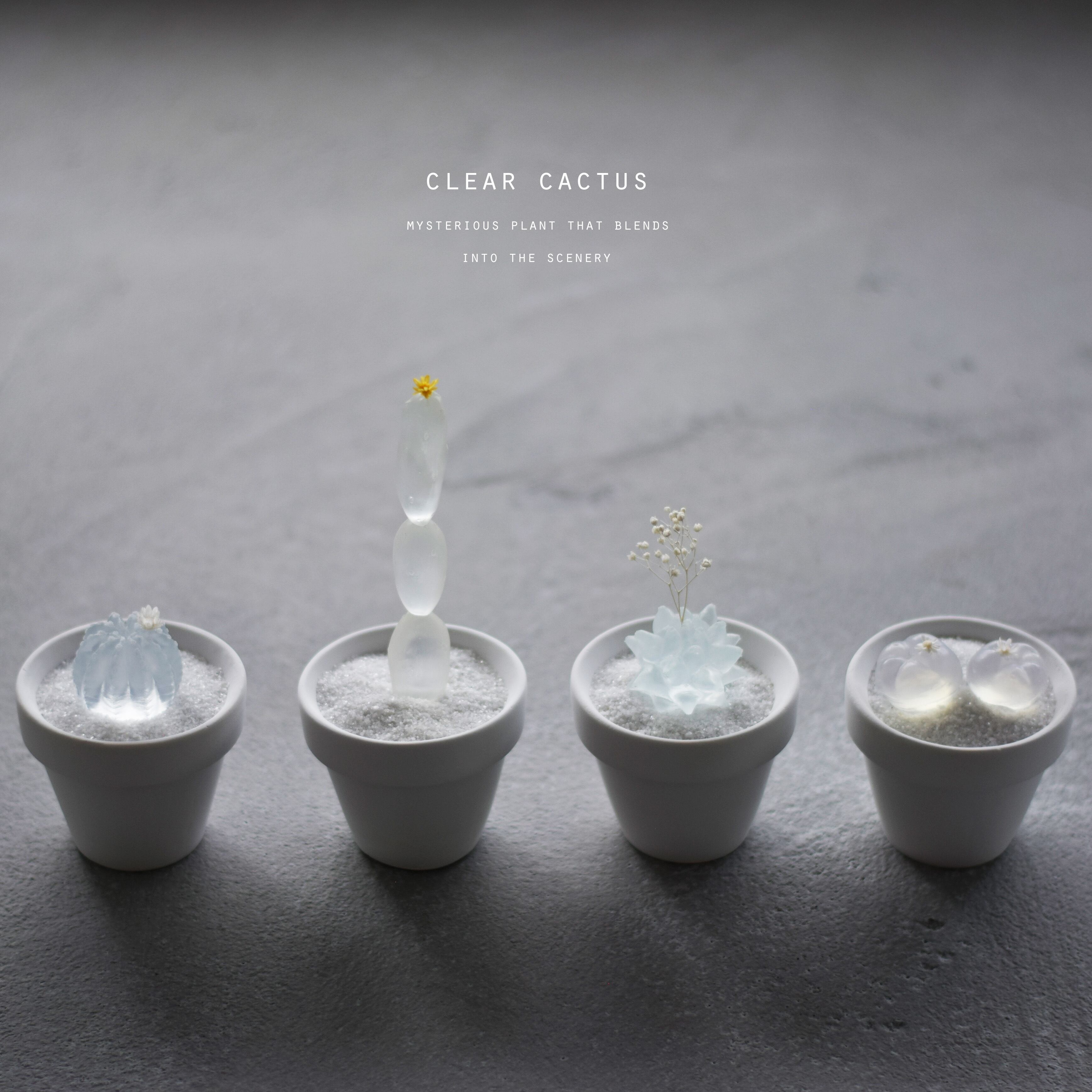 サボテンが体内にため込んでいるお水を感じる透明なサボテンです。